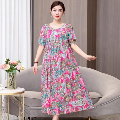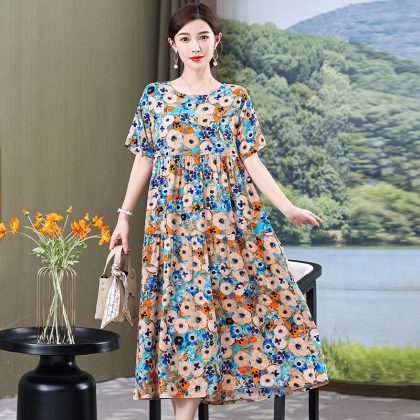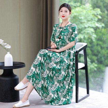 | nameOriginal | 2024 New High-end Floral Cotton Silk Dress Women's Summer Elegant Mother Belly Covering Large Size Artificial Cotton Long Dress |