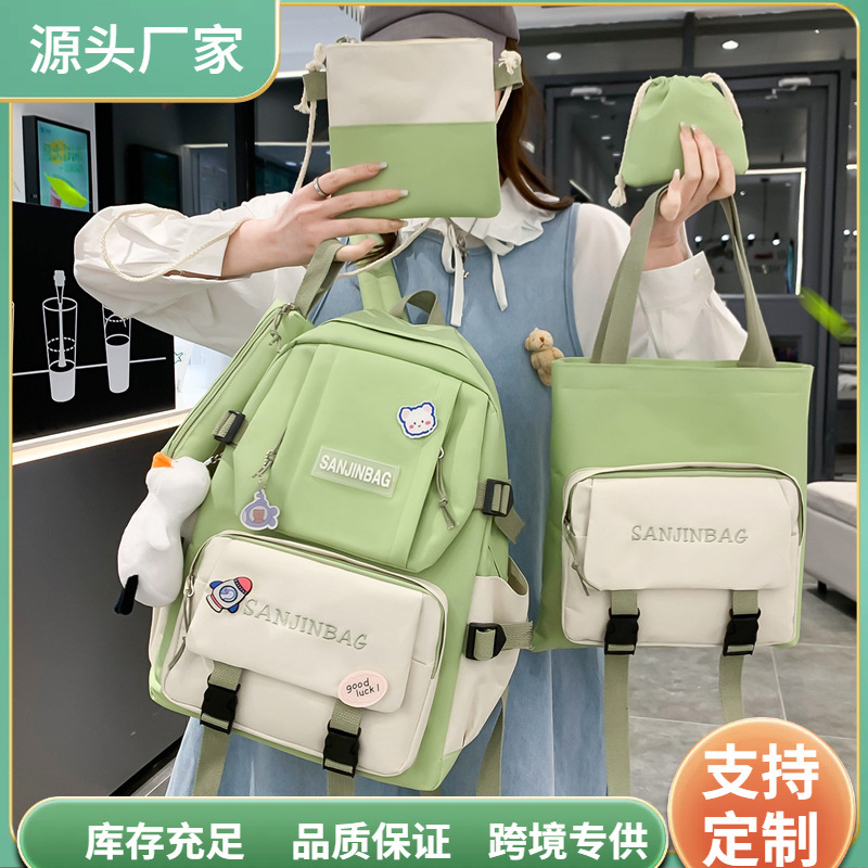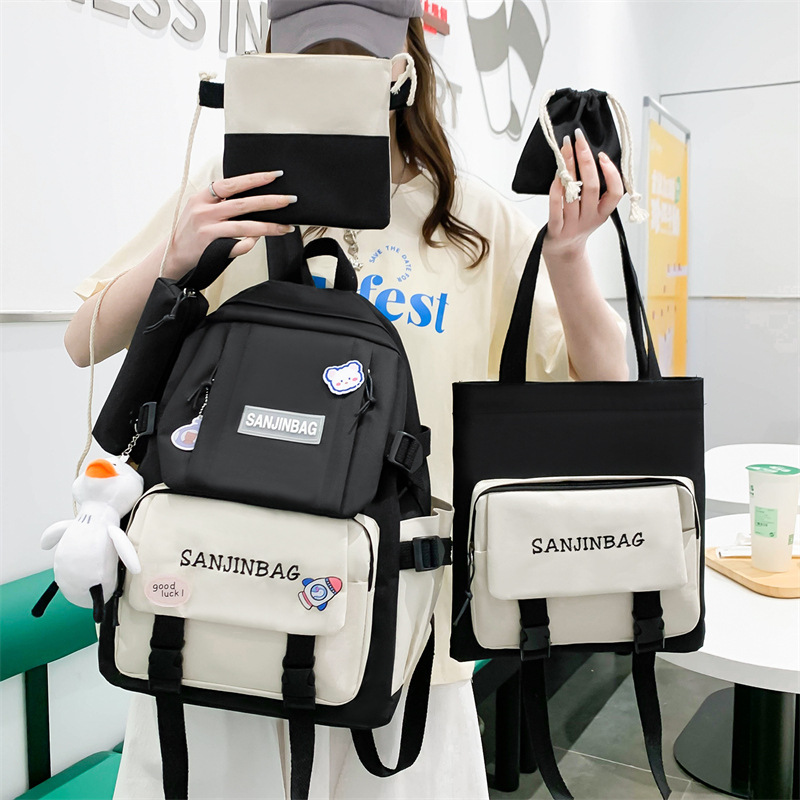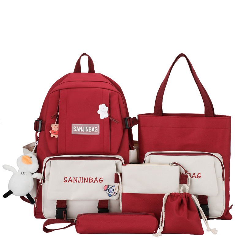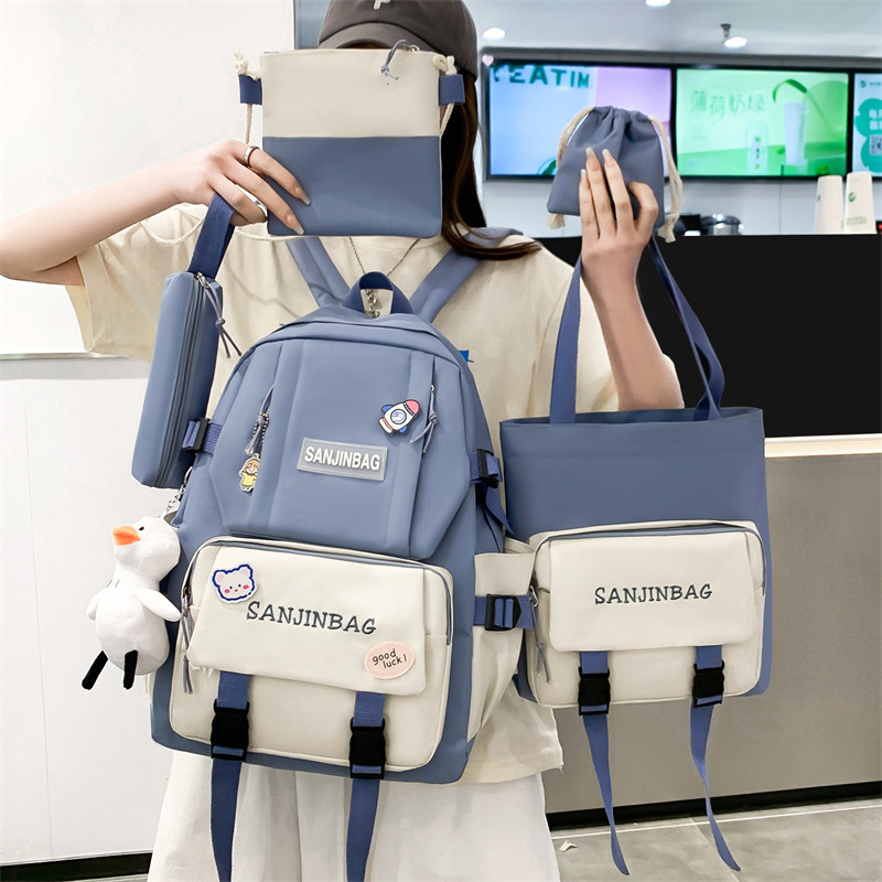 2024 New High-end Sense Five-piece Schoolbag High School Students Large Capacity Backpack Backpack Backpack Multi-use