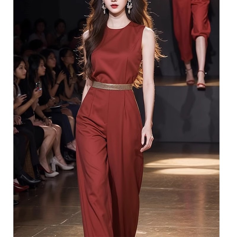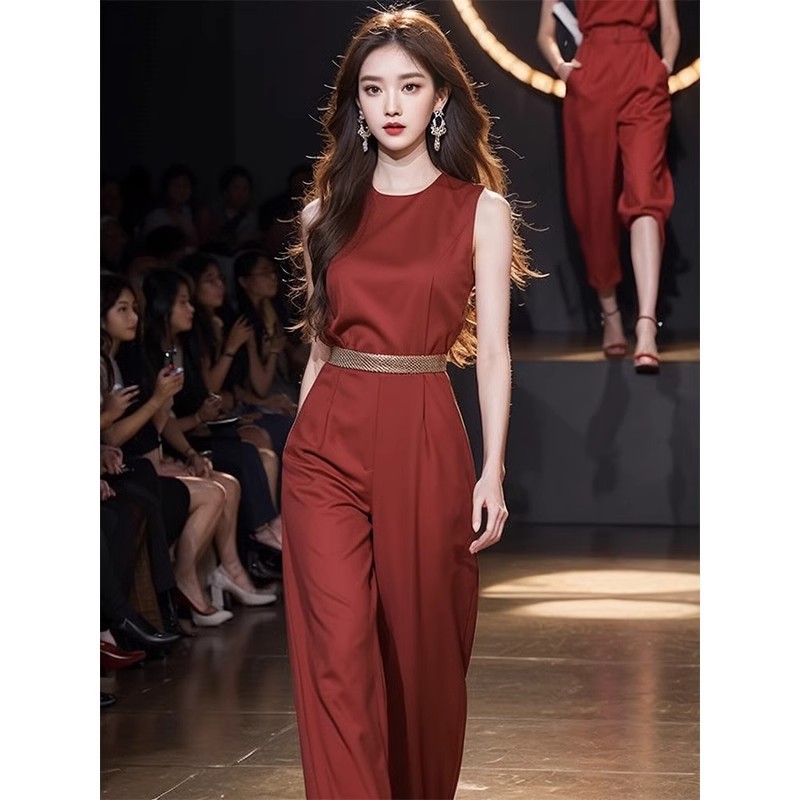 2024 new high-end unique jumpsuit super good-looking chic high-end red sleeveless jumpsuit children summer