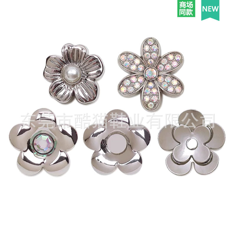 | nameOriginal | 2024 New Hole Shoes Shoe Accessories DIY Shoe Buckle silver Flower Metal Shoe Flower Decoration Accessories Fit Cross |