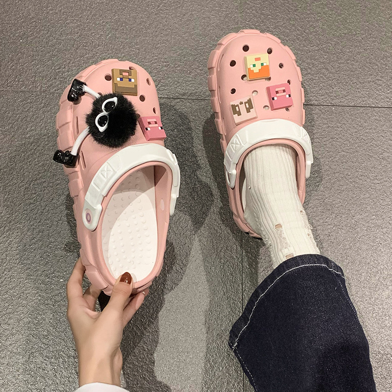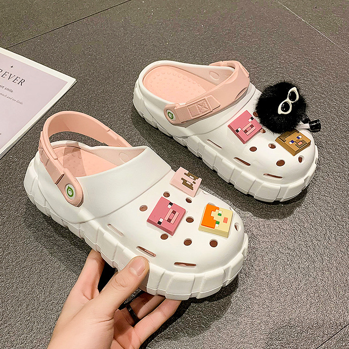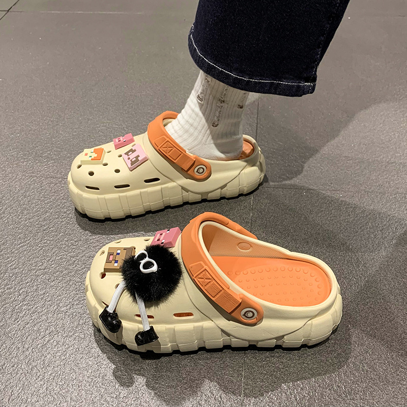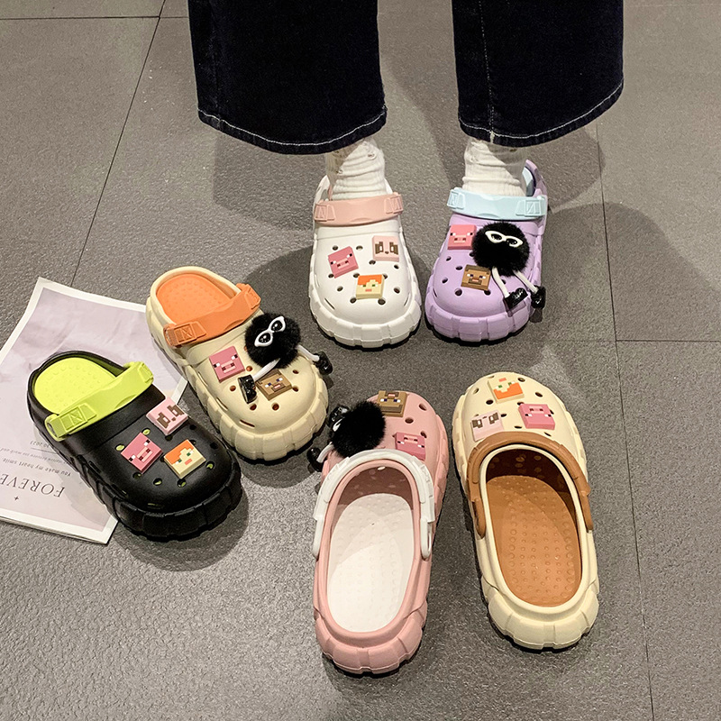 | nameOriginal | 2024 new hole shoes women's outer wear summer thick bottom cartoon cute beach sandals two-way closed toe half slippers |