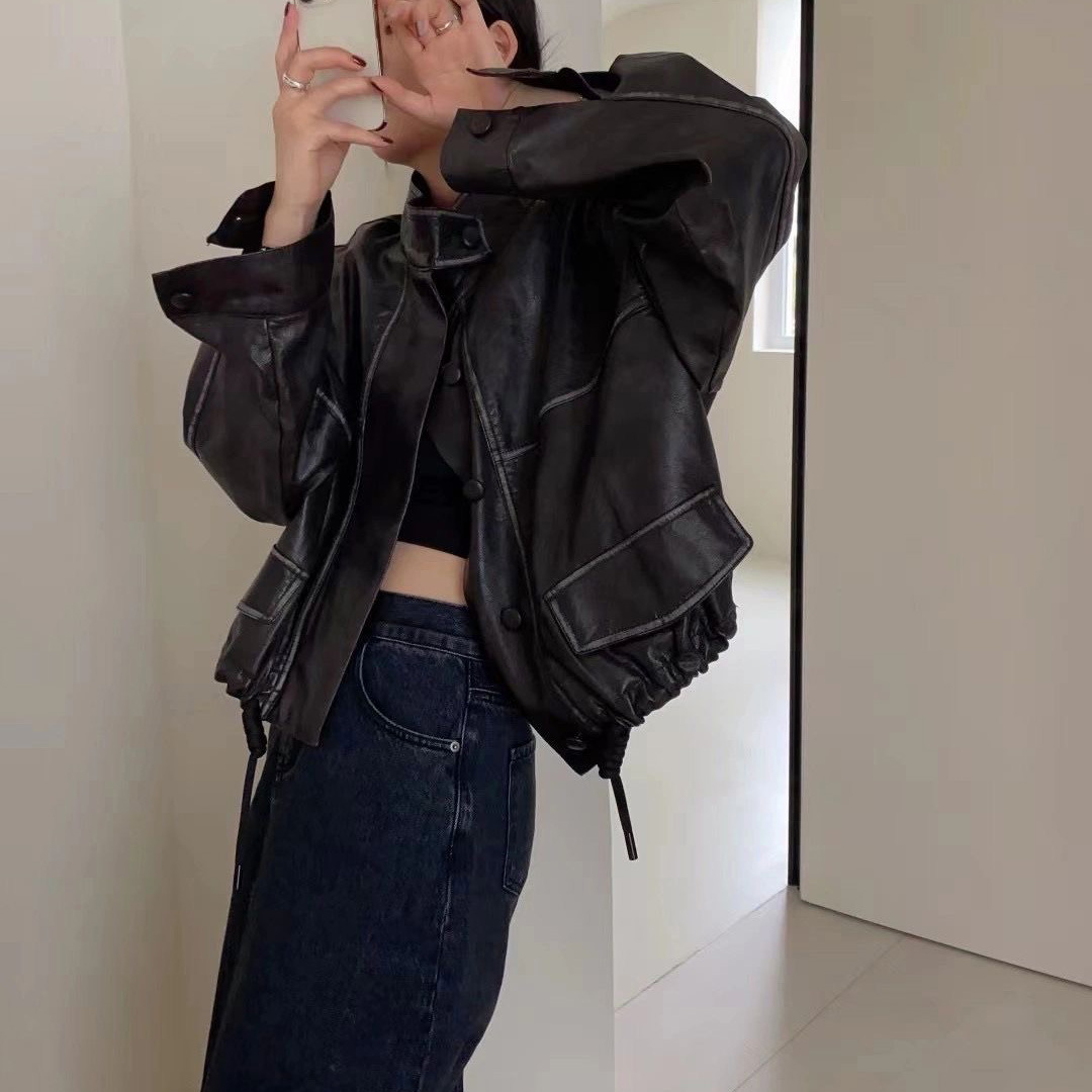 | nameOriginal | 2024 new Hong Kong style pu leather women's coat this year popular design sense American retro locomotive explosion high-end |