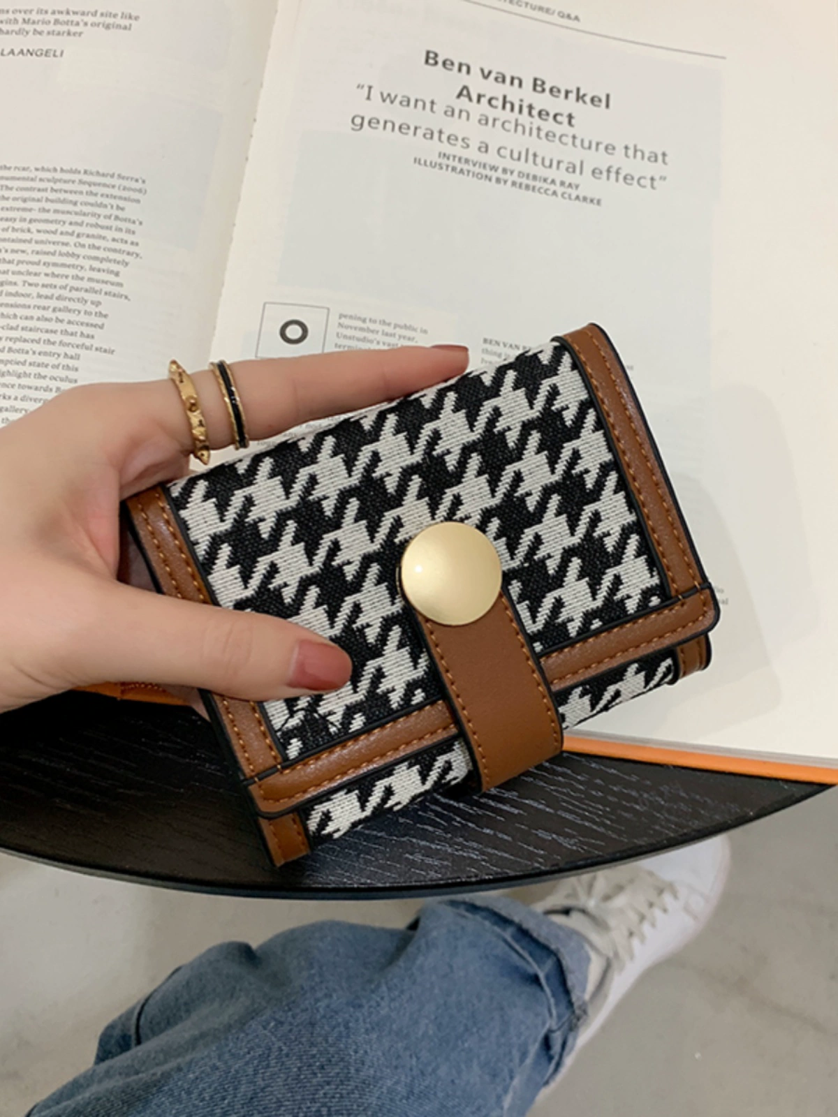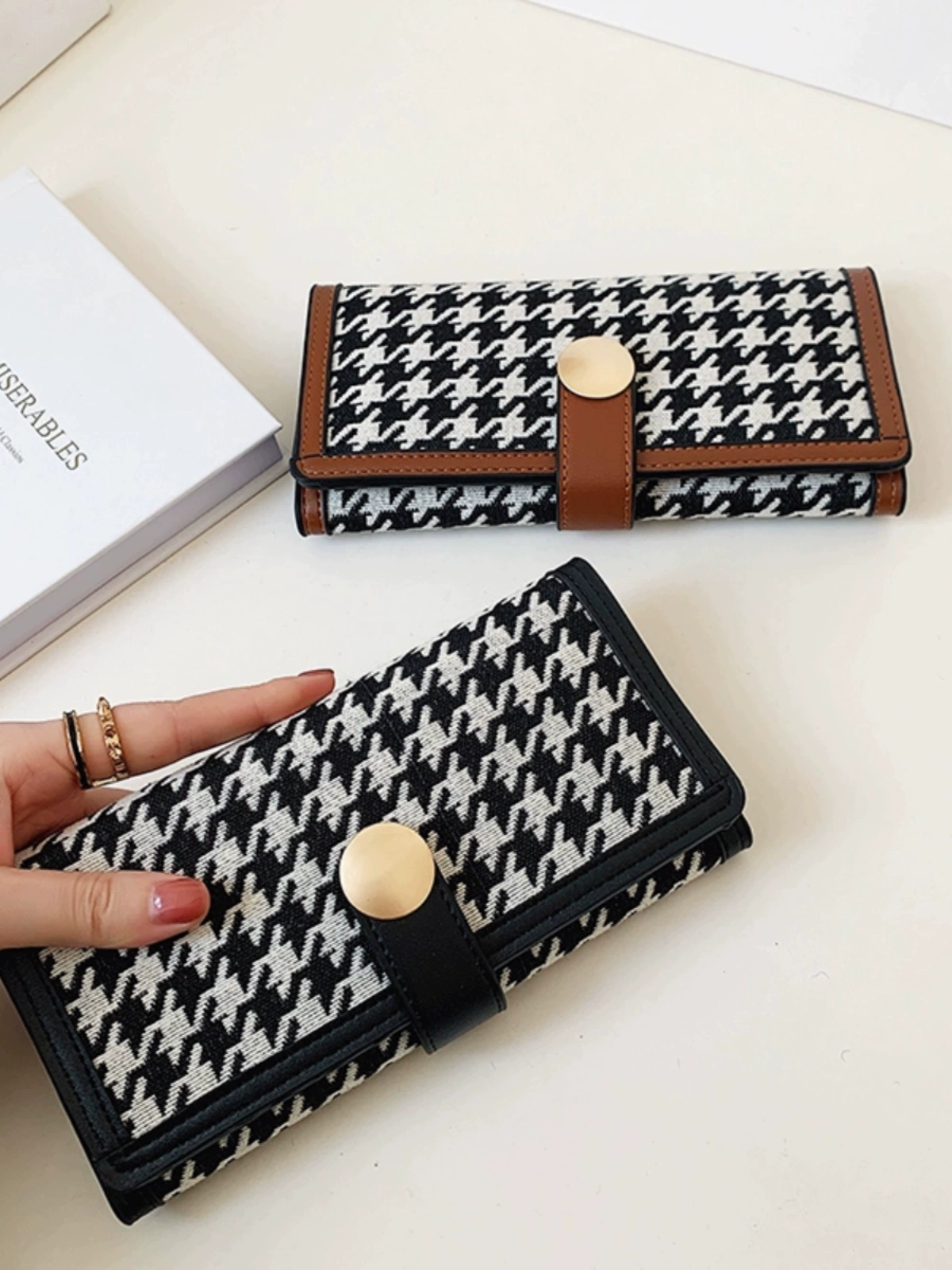 2024 New Houndstooth Plaid Wallet Women’s Short Fashionable Student Folding Coin Purse Multi-Card Slot Long Wallet