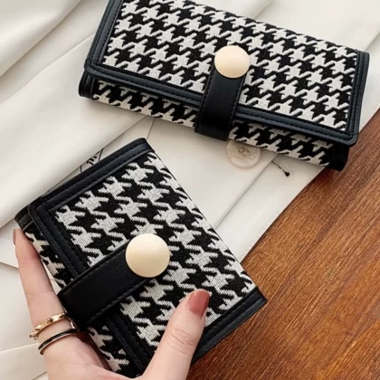 2024 New Houndstooth Plaid Wallet Women’s Short Fashionable Student Folding Coin Purse Multi-Card Slot Long Wallet