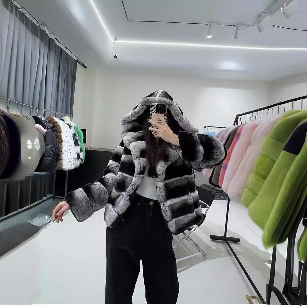 2024 new ins blogger wind super cold totoro pattern rex rabbit fur coat oversized hat fur fur coat