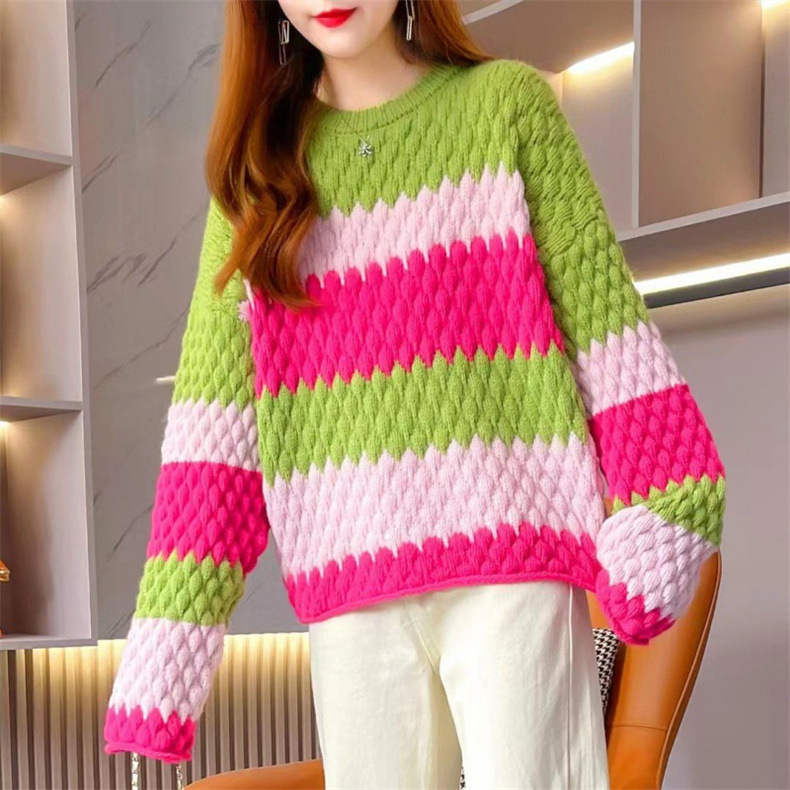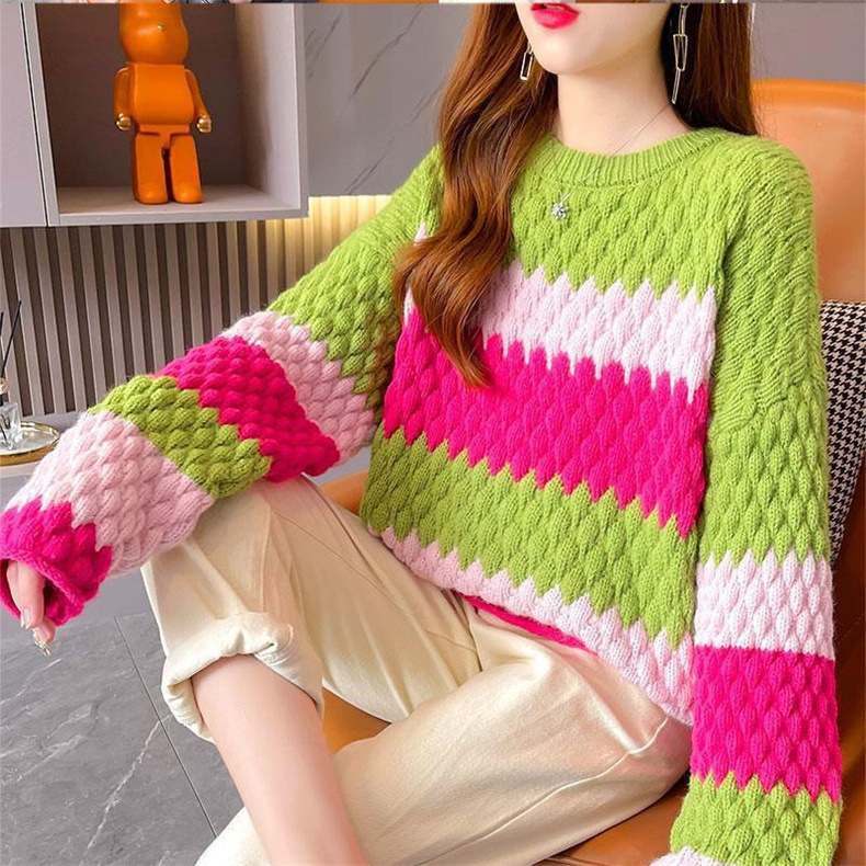 2024 New Internet Celebrant Contrast Soft Waxy Sweater Women's Knitted Sweater Autumn and Winter Wear Korean Style Lazy Style Women's Base Top Trendy