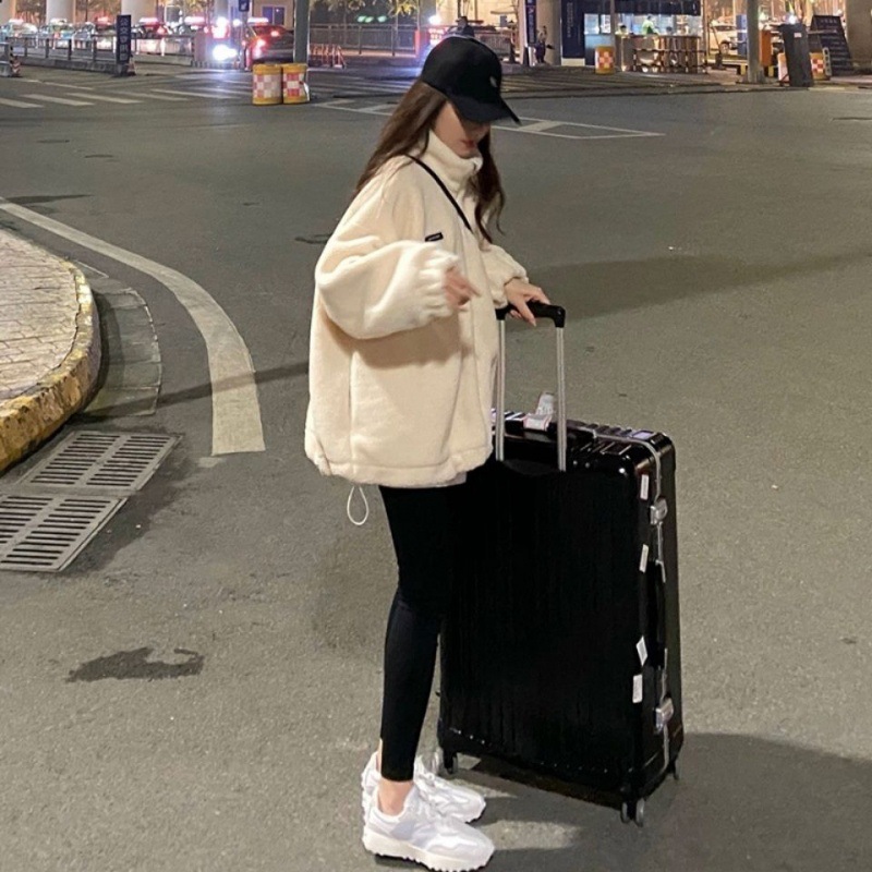 2024 New Internet Celebrity Sweatshirt Lamb Wool Fried Street Fragrant Style Thick Coat Spring and Autumn Women’s Retro Hong Kong Style Age Reduction
