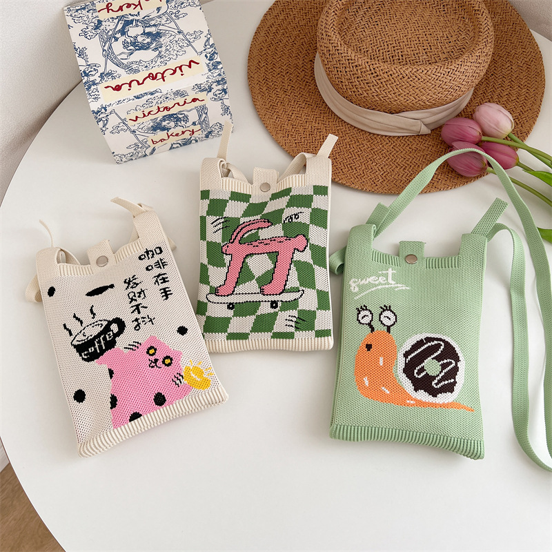 | nameOriginal | 2024 New Japanese and Korean Cute Cartoon Knitted Mobile Phone Bag Women's Crossbody Small Bag for Spring and Summer Travel Portable Coin Purse  |