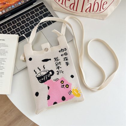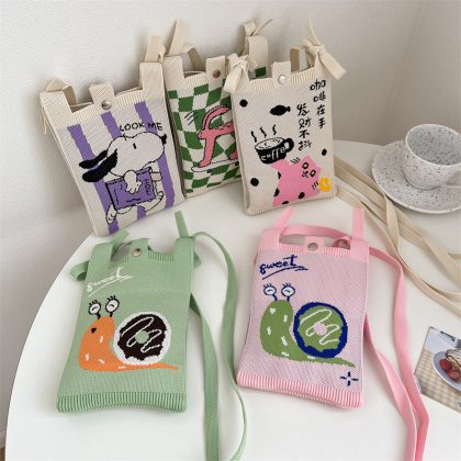 | nameOriginal | 2024 New Japanese and Korean Cute Cartoon Knitted Mobile Phone Bag Women's Crossbody Small Bag for Spring and Summer Travel Portable Coin Purse  |