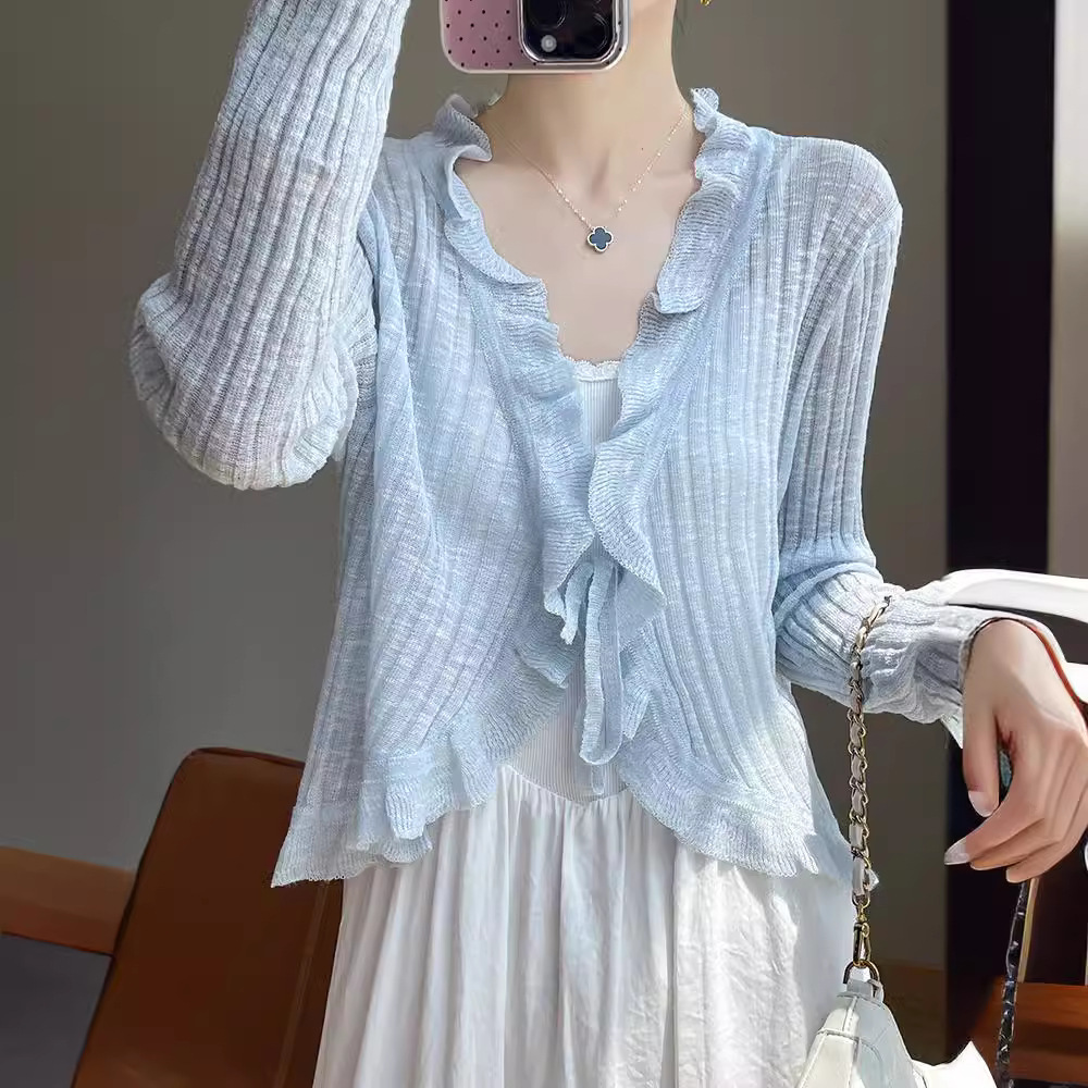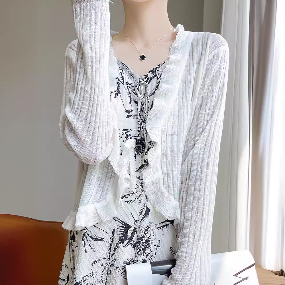 | nameOriginal | 2024 New Knitted Thin Sunscreen Cardigan Summer Lace Strap Korean Style Sweet Air-conditioning Shirt Women's Shawl Coat |