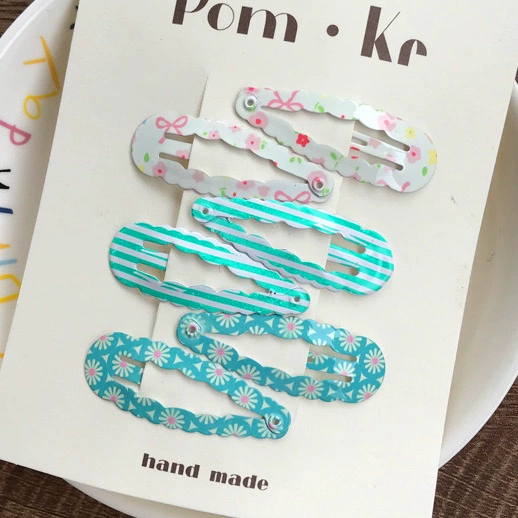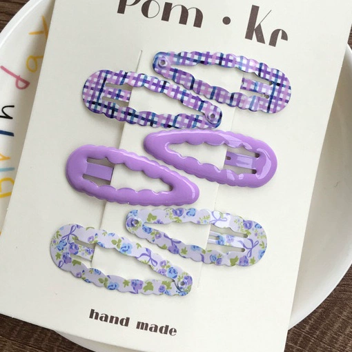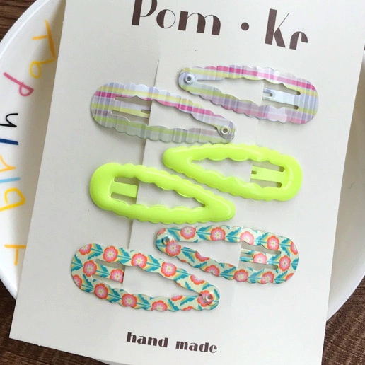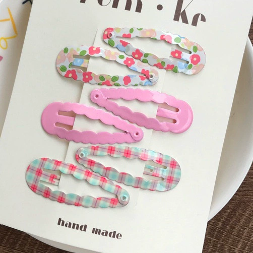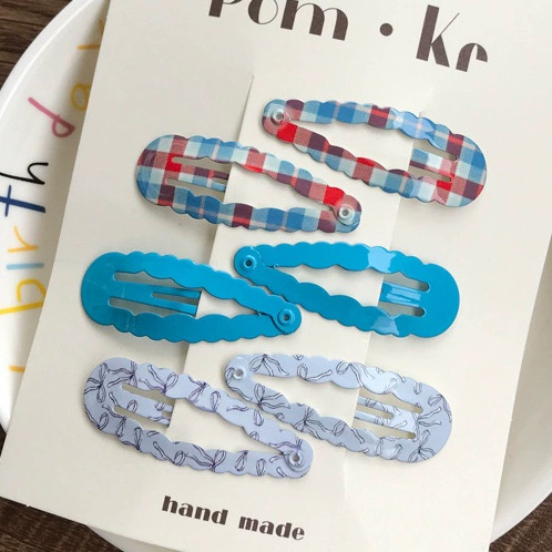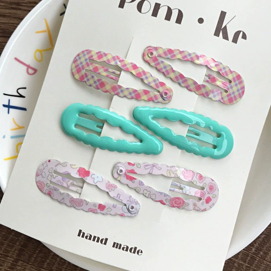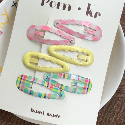 | nameOriginal | 2024 new Korean pom children's hair accessories girls sweet plaid printed wavy bangs side BB hair clip card |