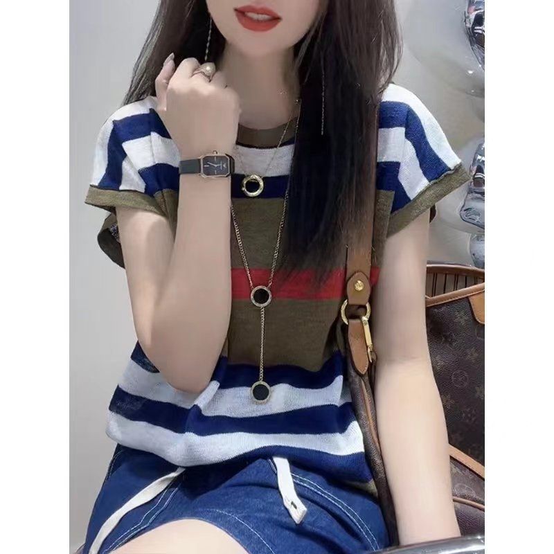 | nameOriginal | 2024 New Korean Style Design Sense Striped Short-sleeved Shirt Women's Summer Niche Fashionable Elegant Base Loose Top |