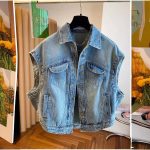 2024 New Korean Style Loose Design Sense Denim Vest Women’s Spring and Autumn European Outfit Sleeveless Winch Vest Jacket