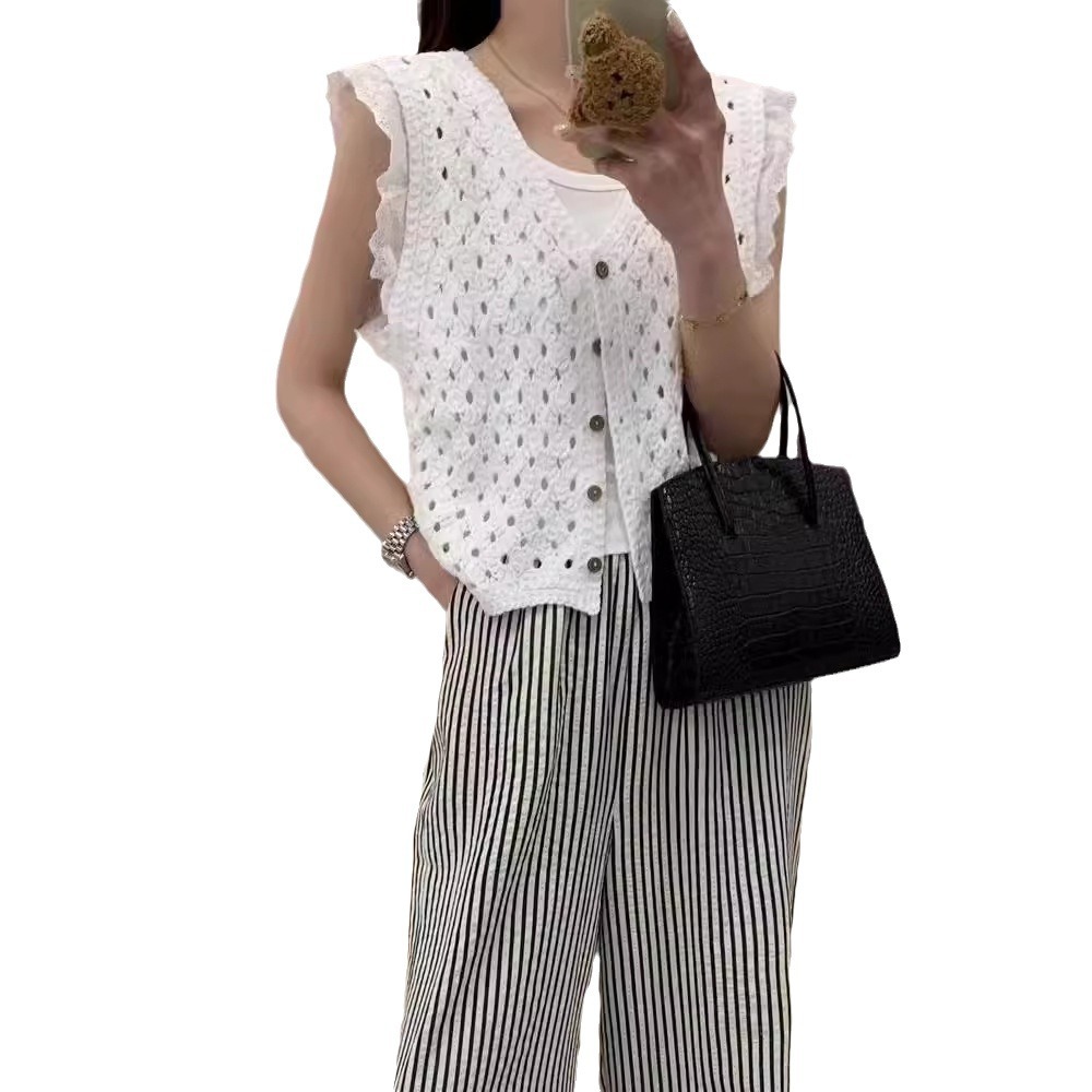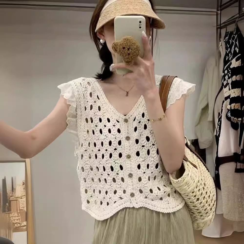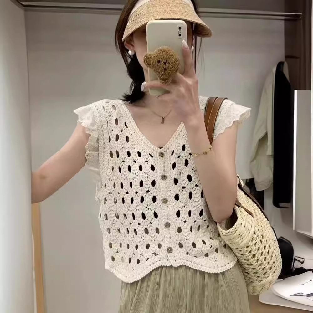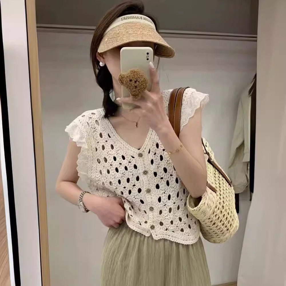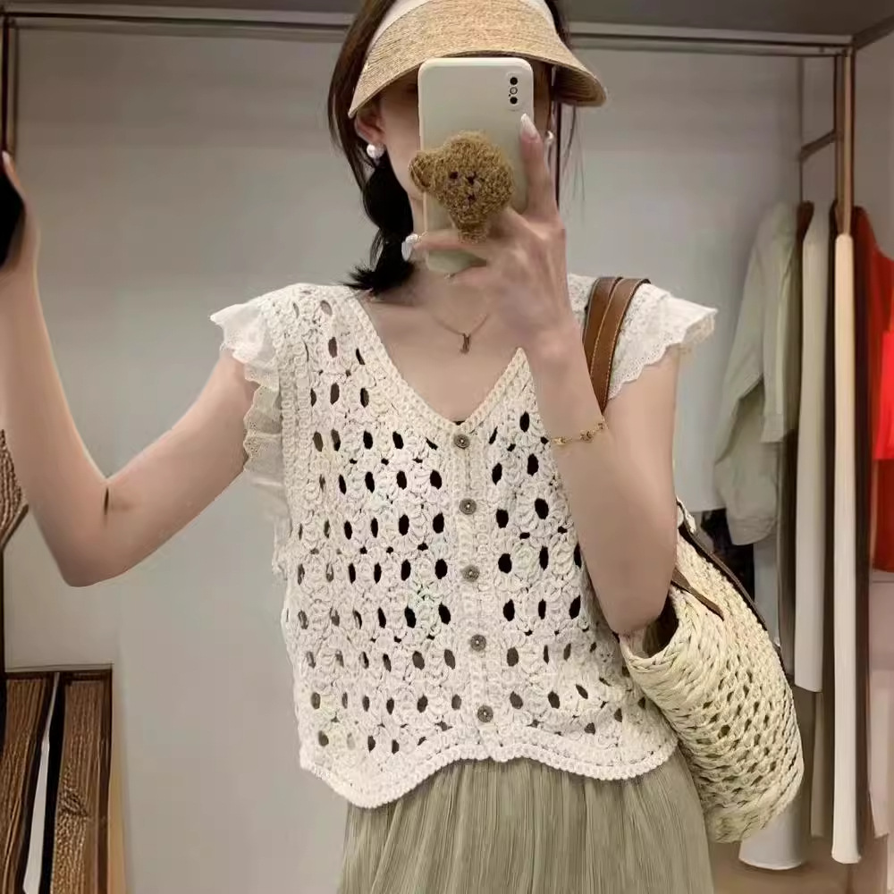 | nameOriginal | 2024 New Korean Style V-neck Knitted Hollow Lace Stitching Flying Sleeve Knitted Vest Summer Top |