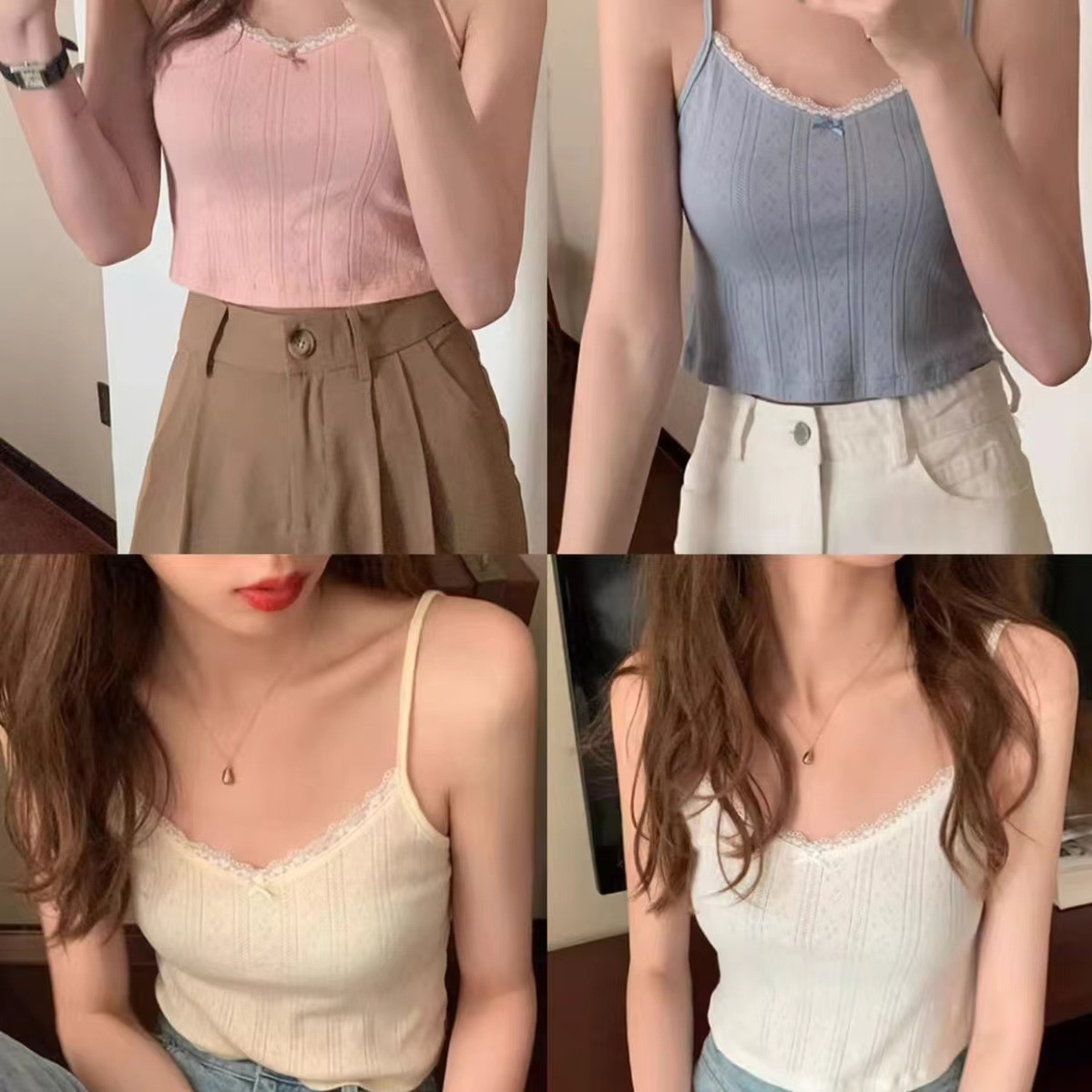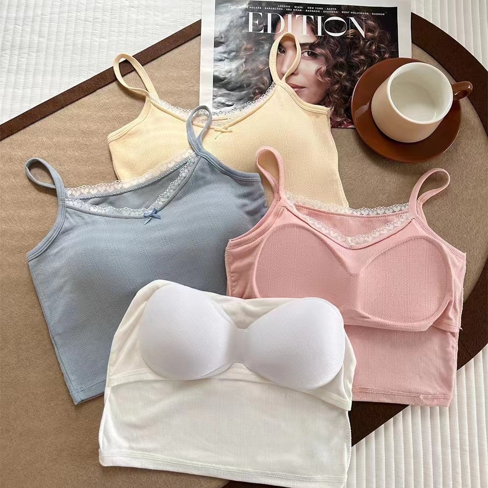 | nameOriginal | 2024 New Lace Spice Girl Pure Desire Style Camisole Women's Slim-fit Slimming All-match Top with Chest Pad |