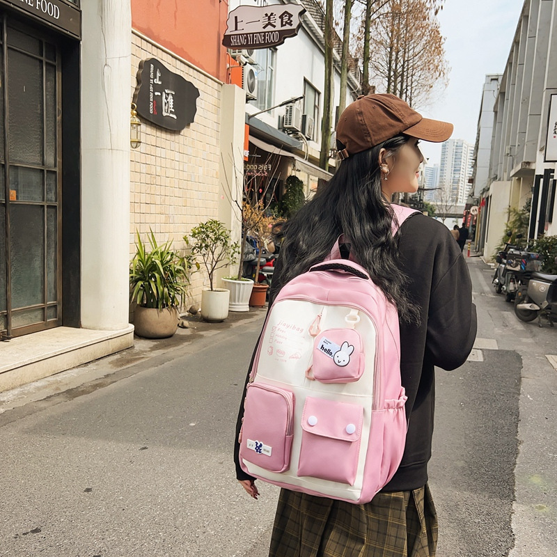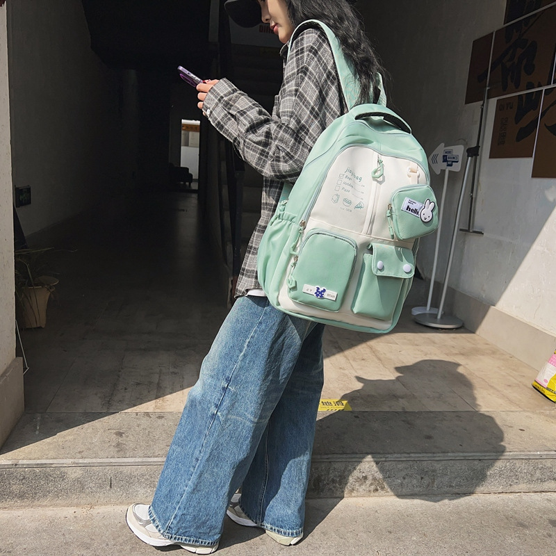 | nameOriginal | 2024 New Large Capacity Color Contrast Backpack Ins High Color Value High School Student Schoolbag Primary School Student Casual Backpack for Women |
