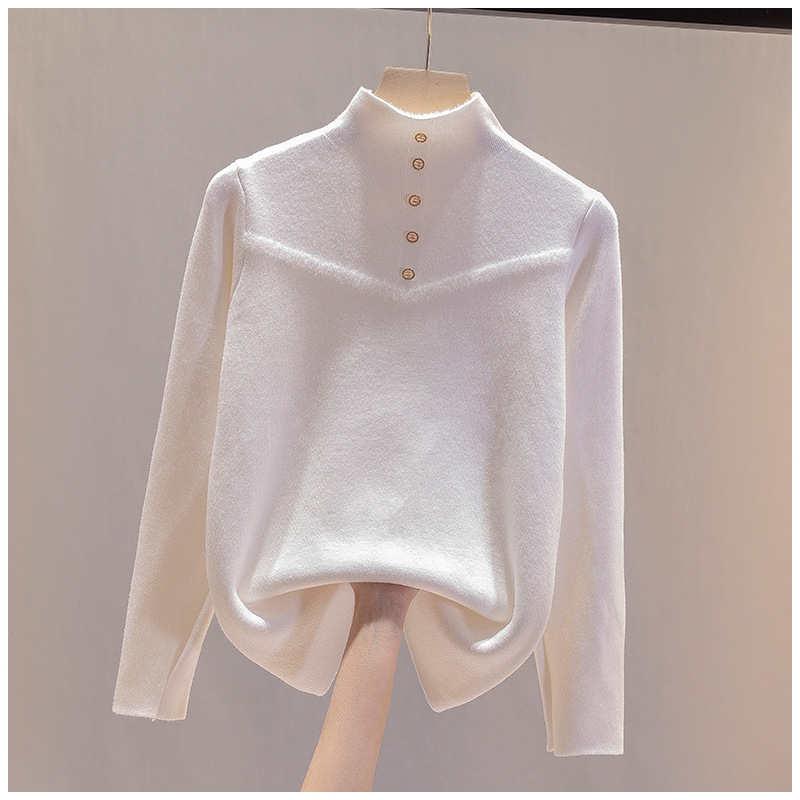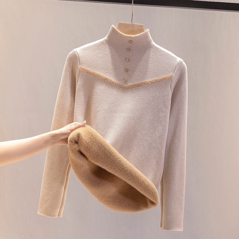 2024 new long sleeve pullover warm one-piece velvet half turtleneck fleece-lined knitted bottoming shirt inner top women's fashion