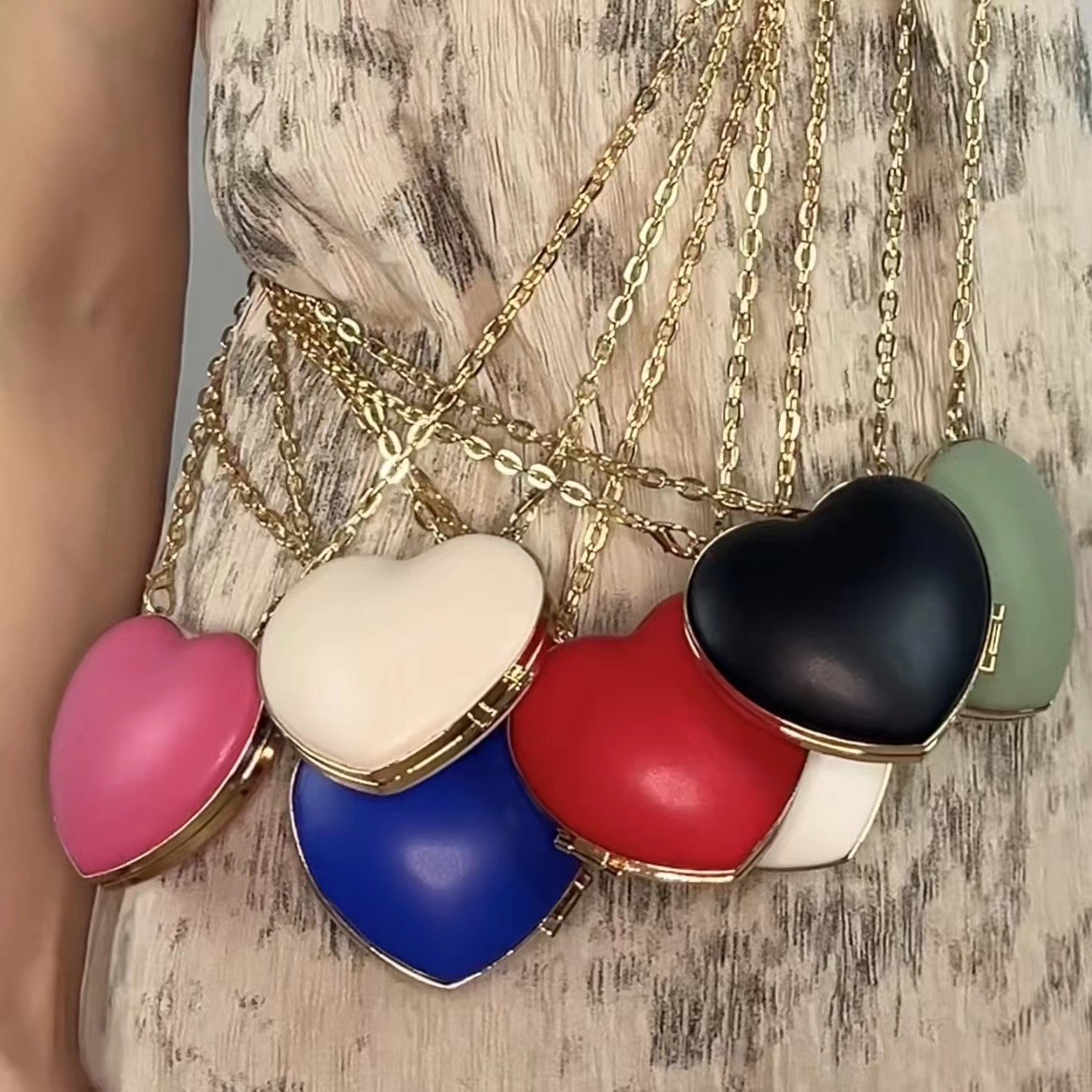 2024 New Love Heart Bag All-match wine red Shoulder Crossbody Mini Chain Bag Fashion Dinner Clutch Bag