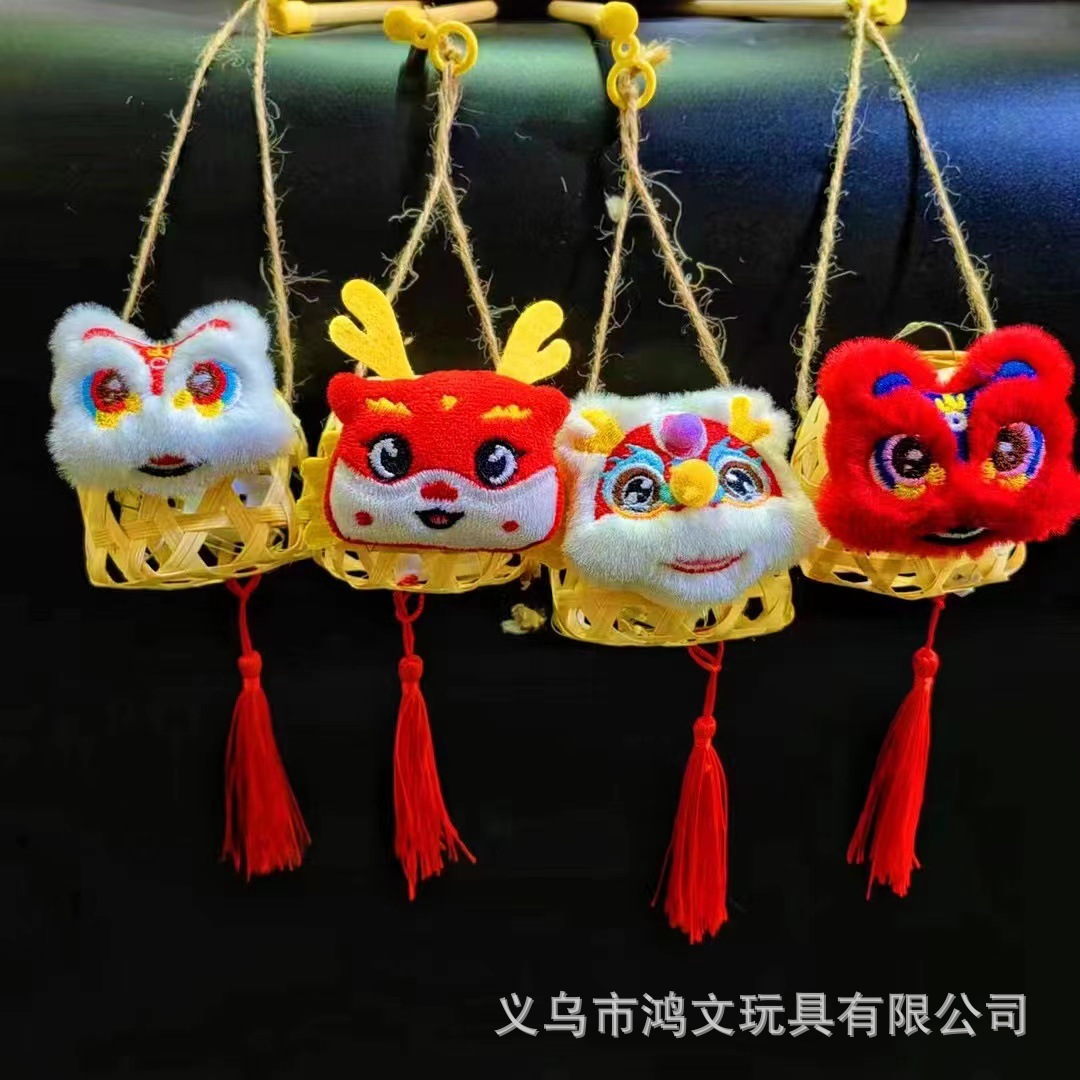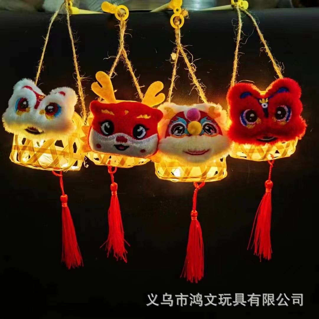 2024 New luminous bamboo lantern embroidery lion portable ancient style children's dragon year lantern scenic spot stall toy