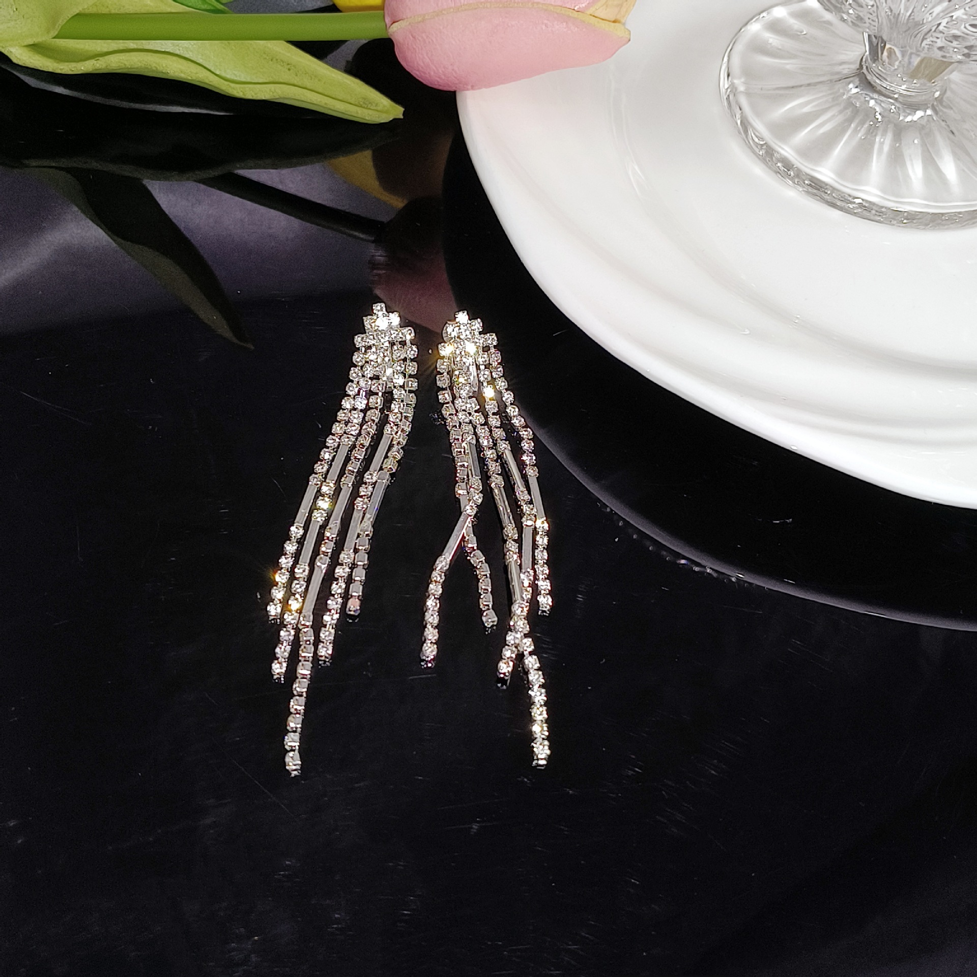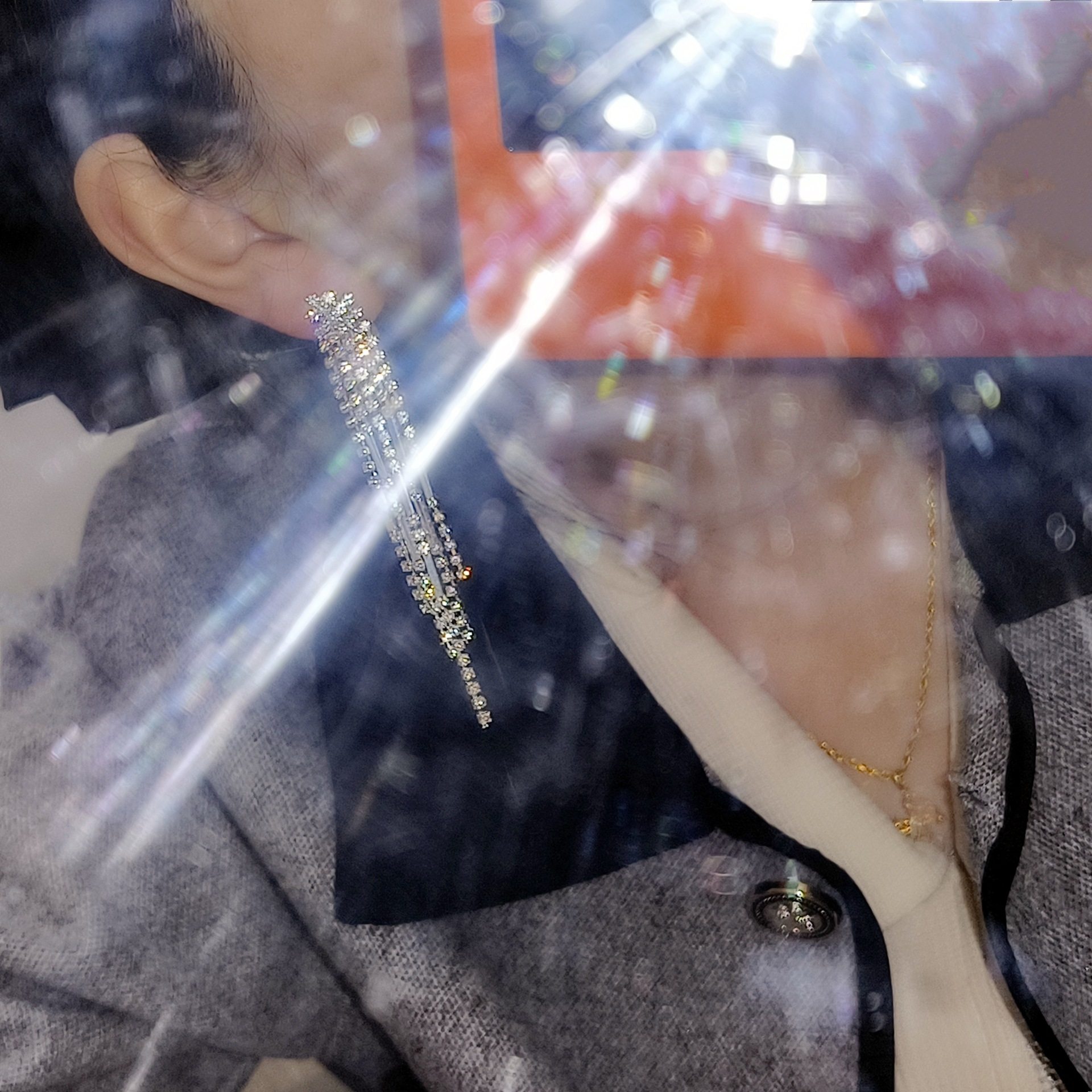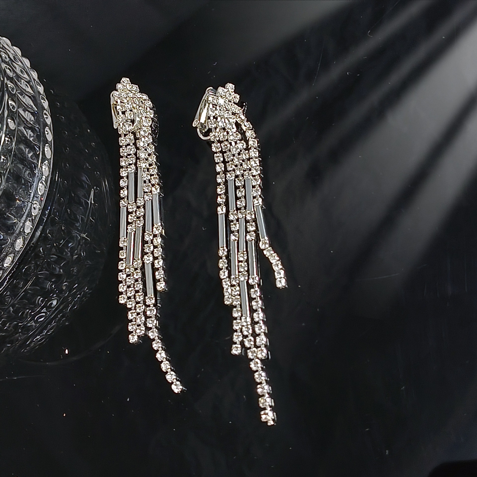 | nameOriginal | 2024 new luxury flash diamond zircon tassel earrings temperament Joker long ear clip earrings wholesale |
