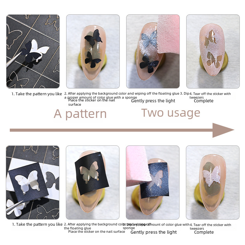 | nameOriginal | 2024 new manicure hollow-out inkjet stickers butterfly star Love star spray gun Template small pattern nail stickers |