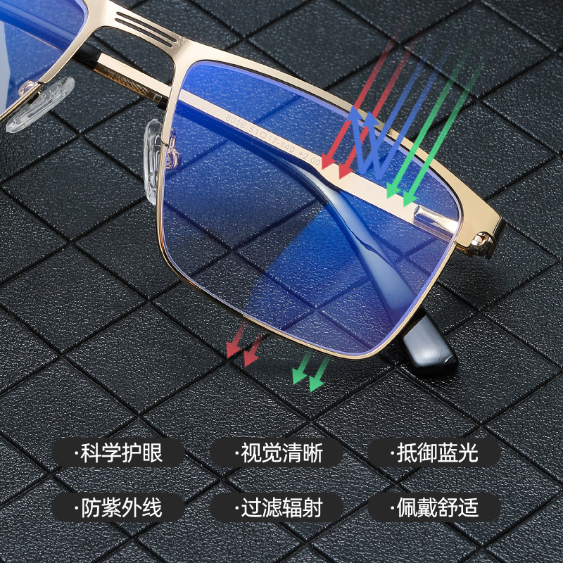 | nameOriginal | 2024 New Metal Square Frame Comfortable Anti-Blue Light Reading Goggles Fashion Business Reading Ultra Light Men's Reading Goggles |