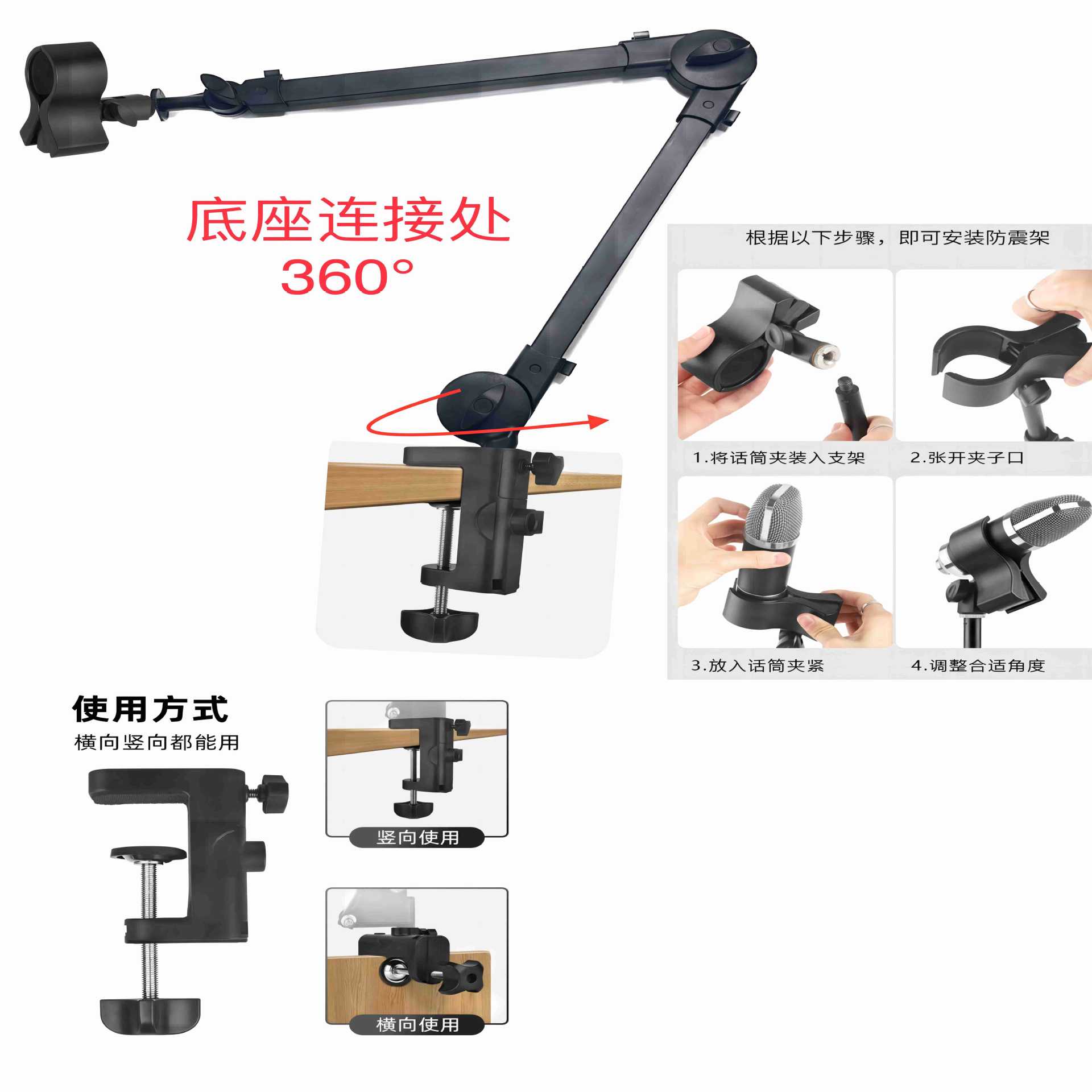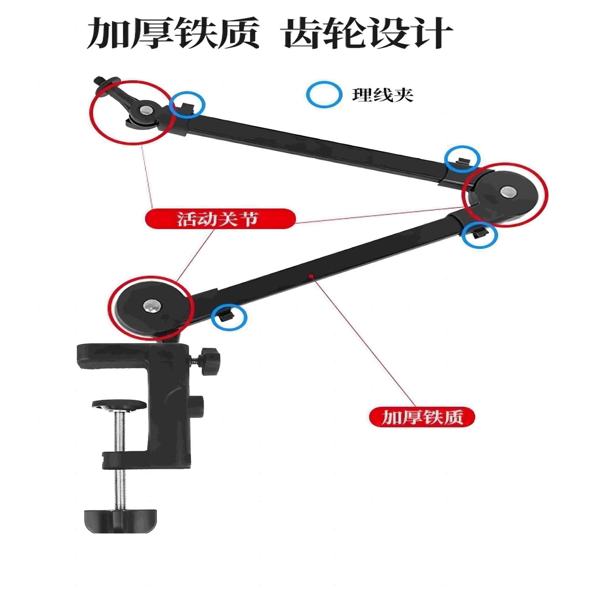2024 New microphone live broadcast special bracket shooting mirror live broadcast stand multi-function 360-degree single arm bracket