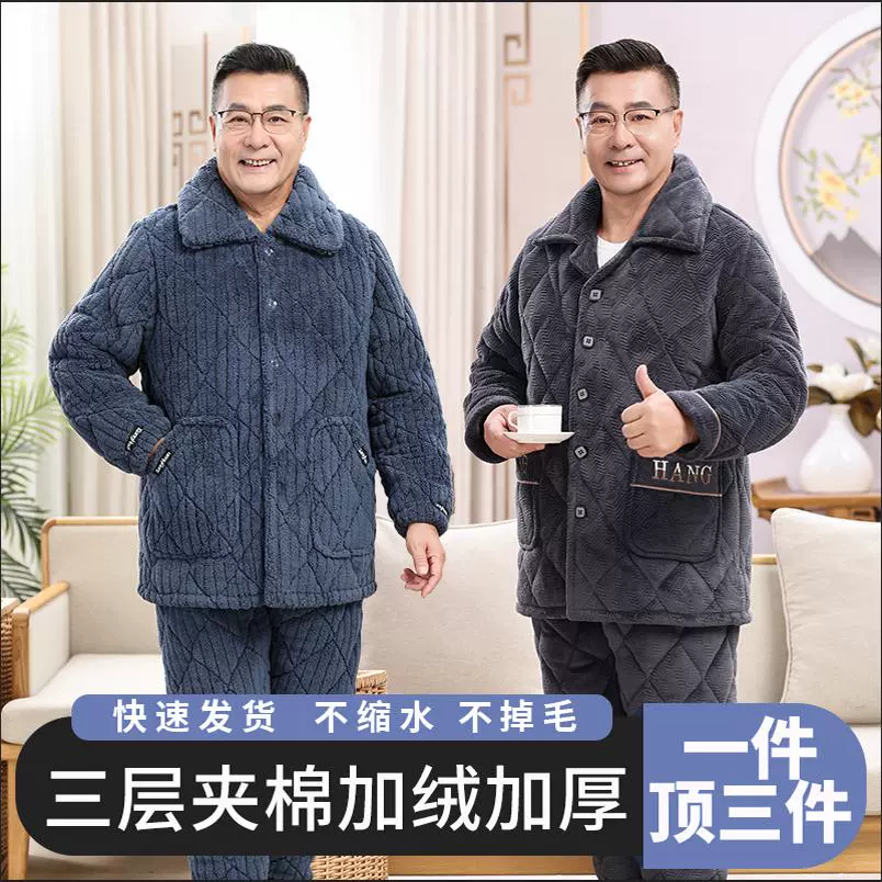 | nameOriginal | 2024 new middle-aged and elderly pajamas thickened and velvet men's autumn and winter coral velvet three-layer quilted warm dad |