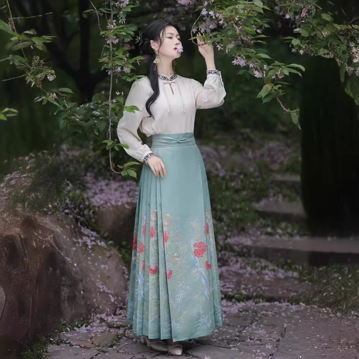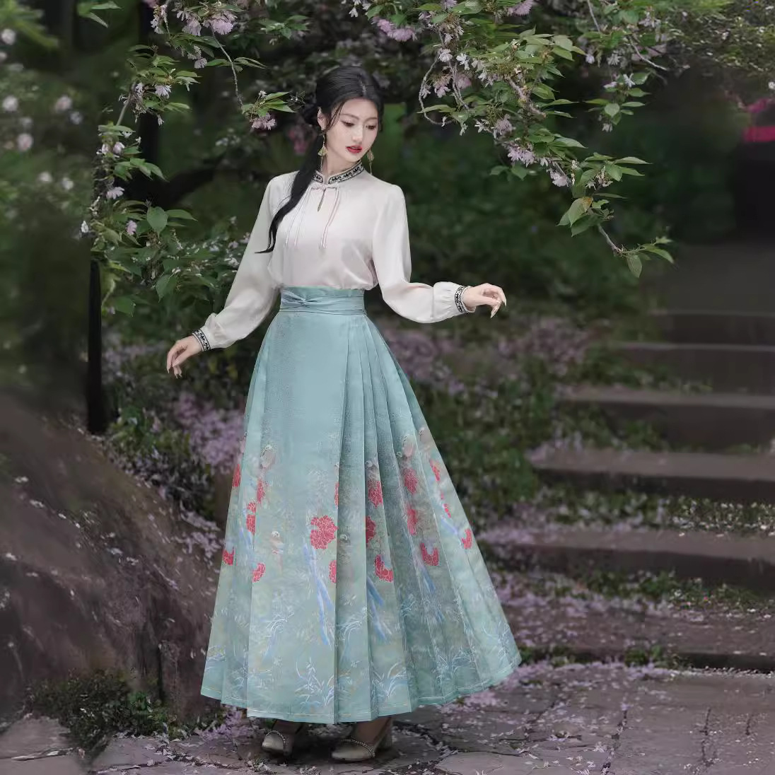 | nameOriginal | 2024 New Ming-made Hanfu Weaving Gold Makeup Flower New Chinese-style Horse-faced Skirt |
