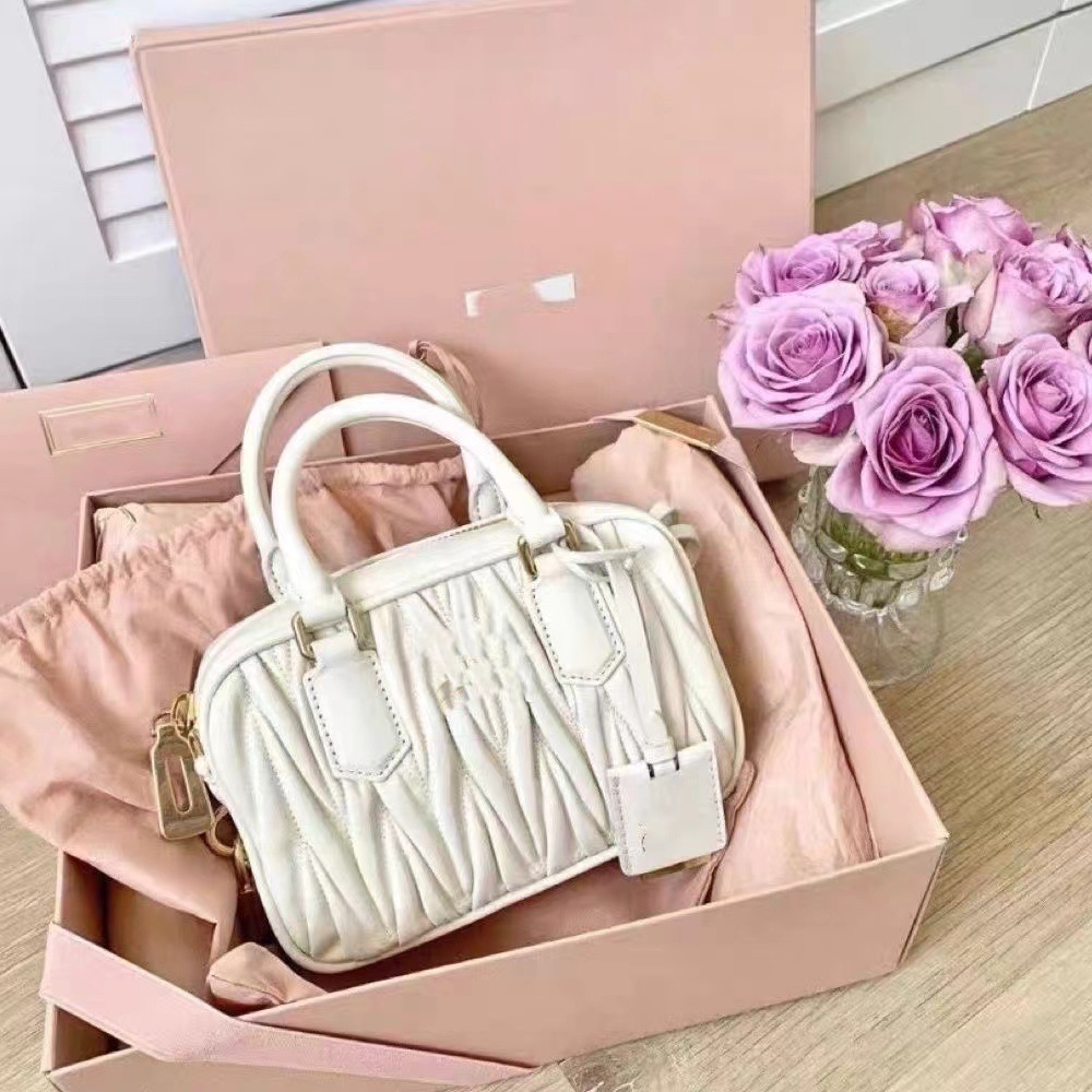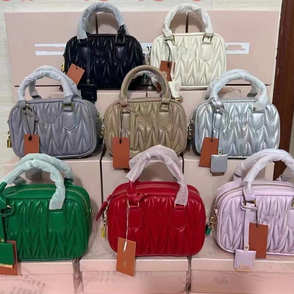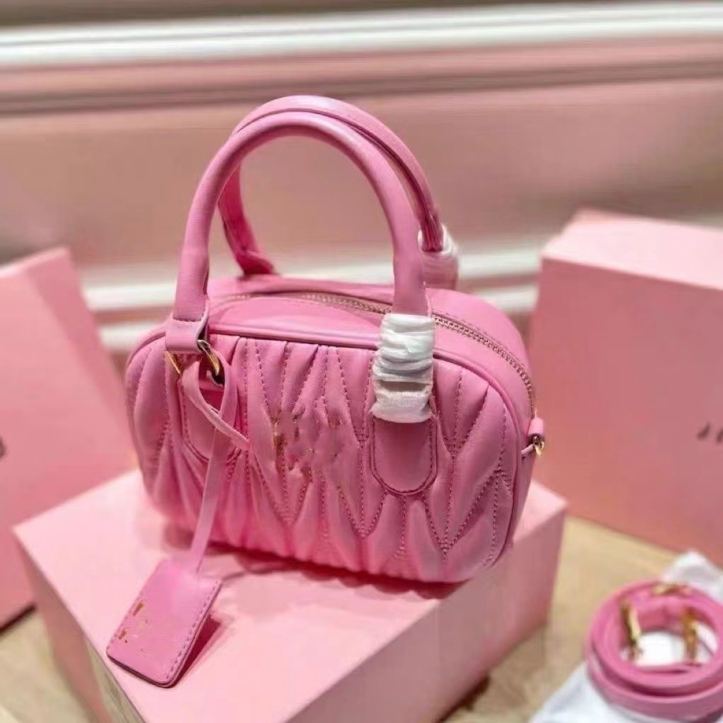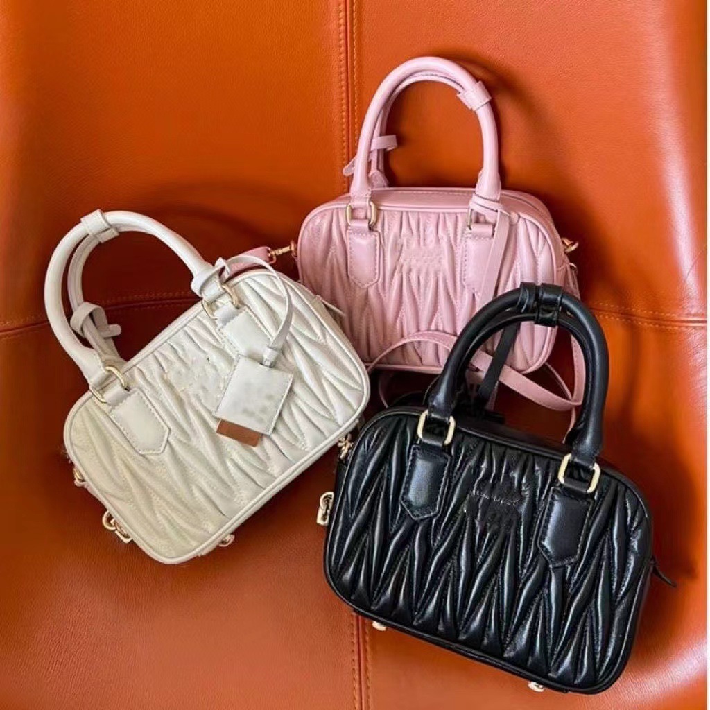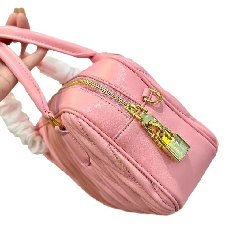 2024 New Miu Folding Bag Miaojia Bowling Small Square Bag Boston Pillow Bag Handbag Fashion Women’s Bag