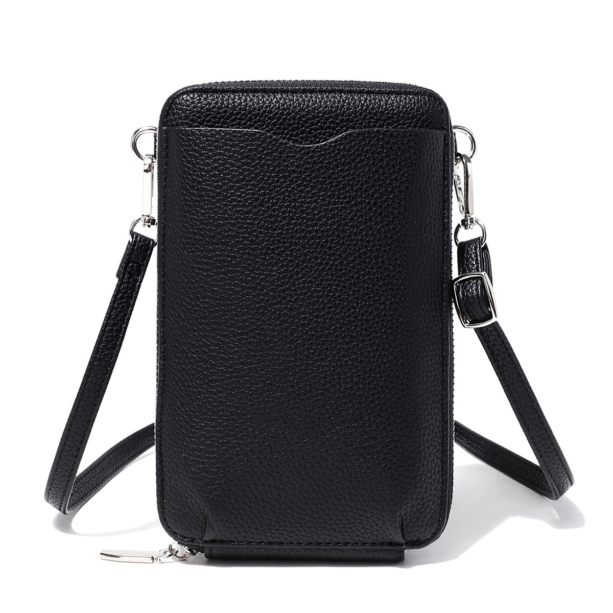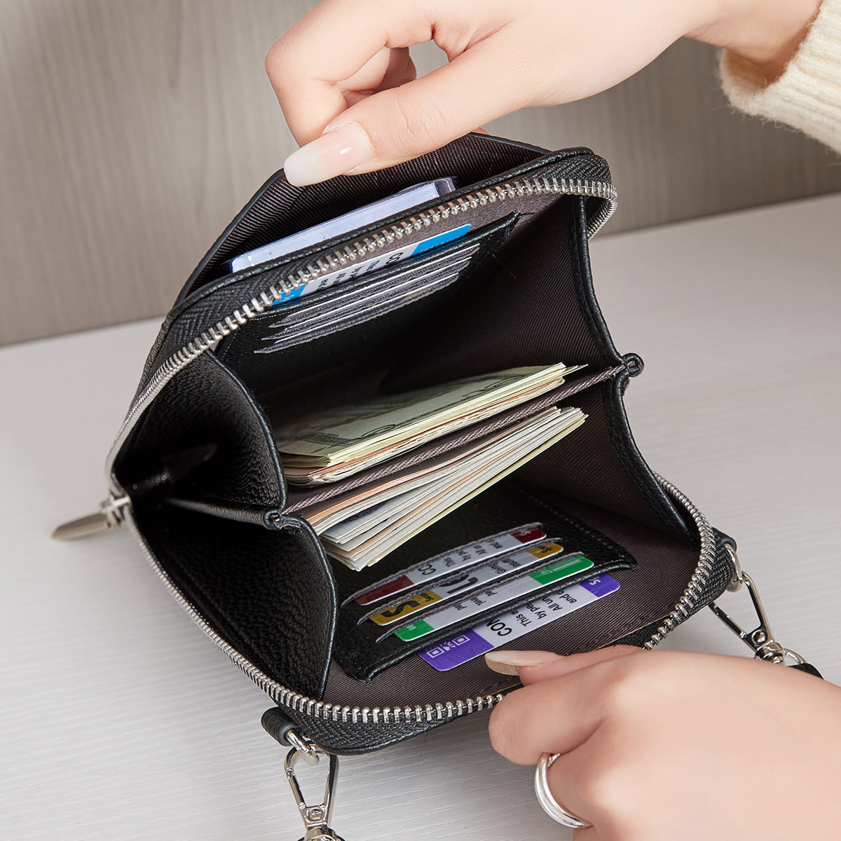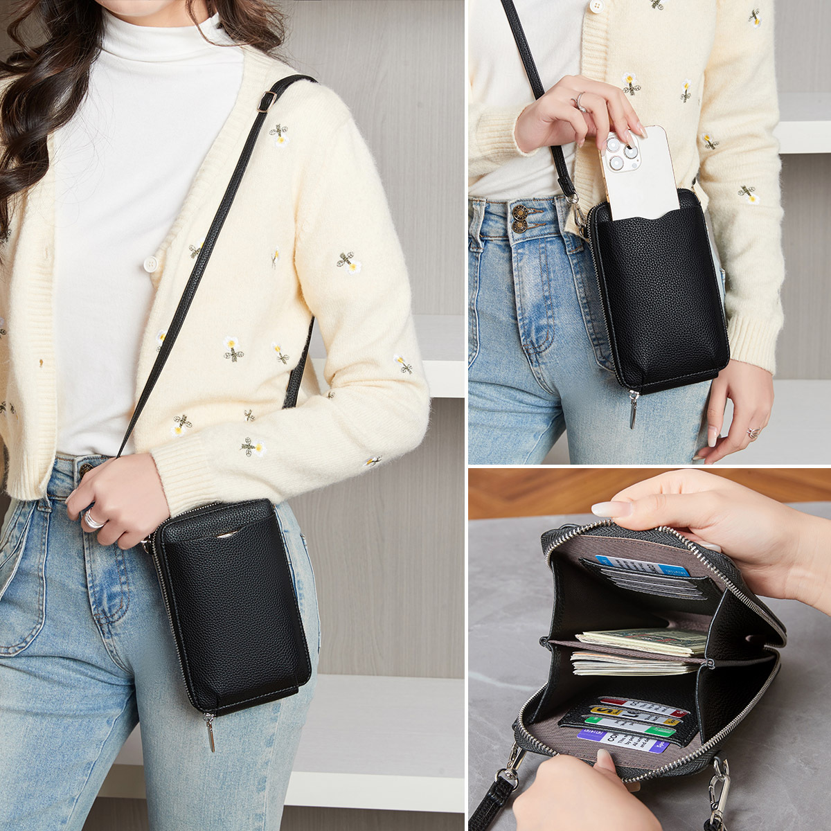2024 new mobile phone bag lychee pattern soft leather vertical zipper mobile phone bag large capacity Women's messenger bag shoulder small