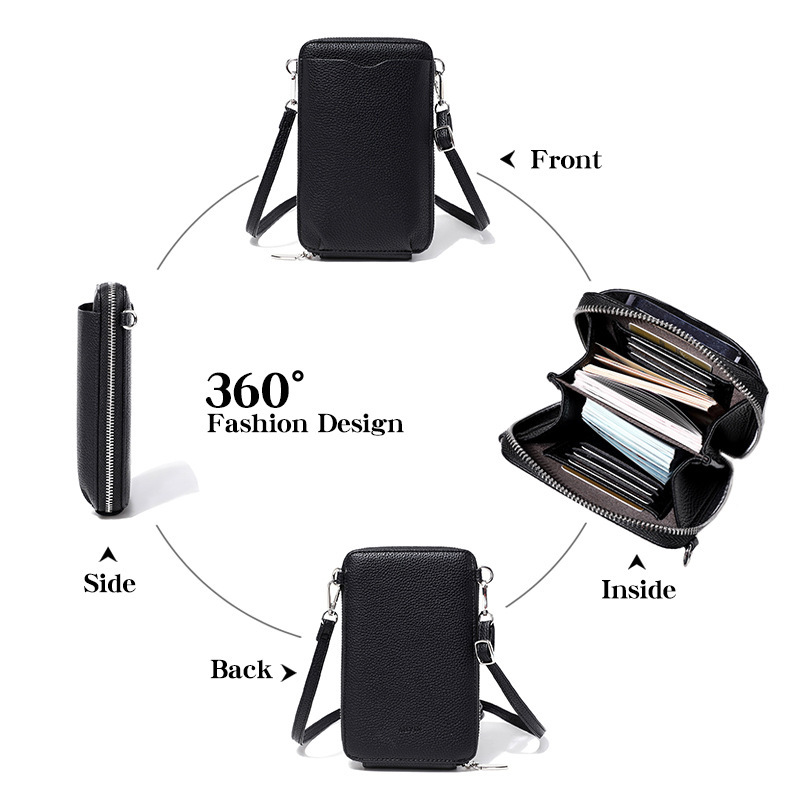 2024 new mobile phone bag lychee pattern soft leather vertical zipper mobile phone bag large capacity Women’s messenger bag shoulder small