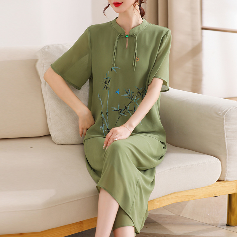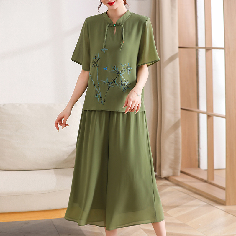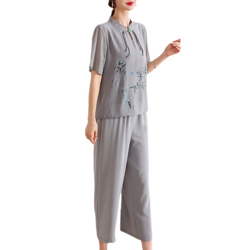 | nameOriginal | 2024 new mother summer short sleeve chiffon suit fashion small shirt western style top middle-aged and elderly T-shirt two-piece set |