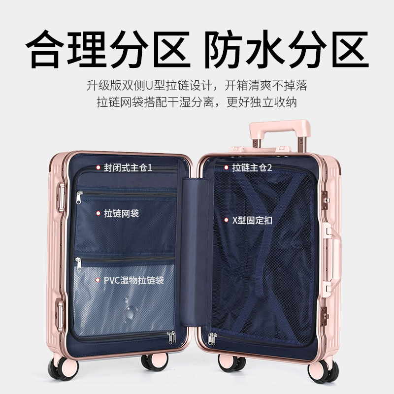 | nameOriginal | 2024 new multi-functional suitcase wholesale 20-inch boarding machine luggage waterproof anti-collision password aluminum frame box |