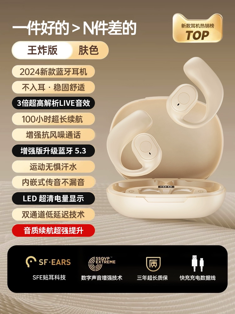 | nameOriginal | 2024 new non-in-ear bone conduction Bluetooth headset, wireless ear-hanging, sports and running, long-term wear without pain, universal for mobile phones |