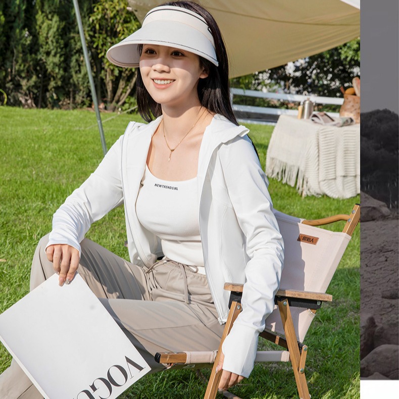 | nameOriginal | 2024 new original yarn ice silk hooded sunscreen upf50 women's summer sunshade anti-ultraviolet breathable sunscreen clothing |