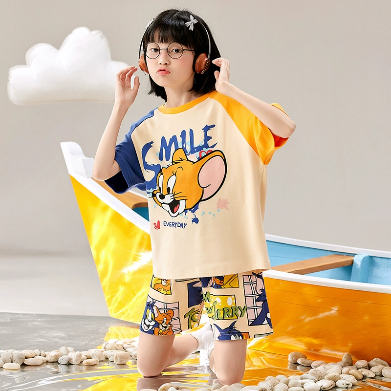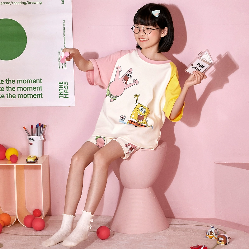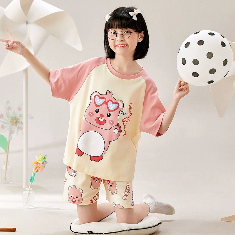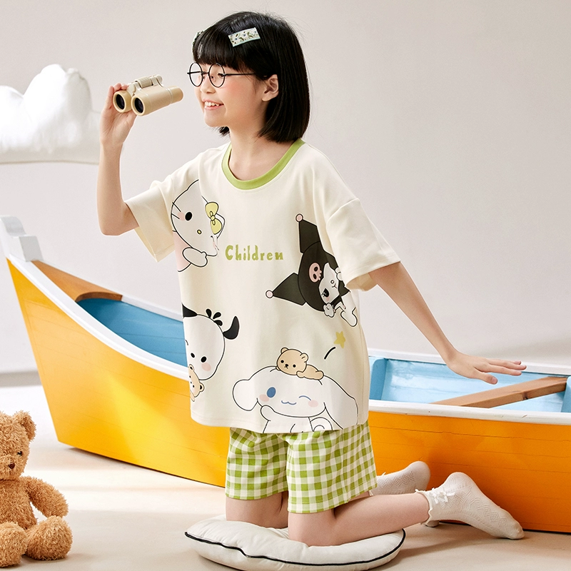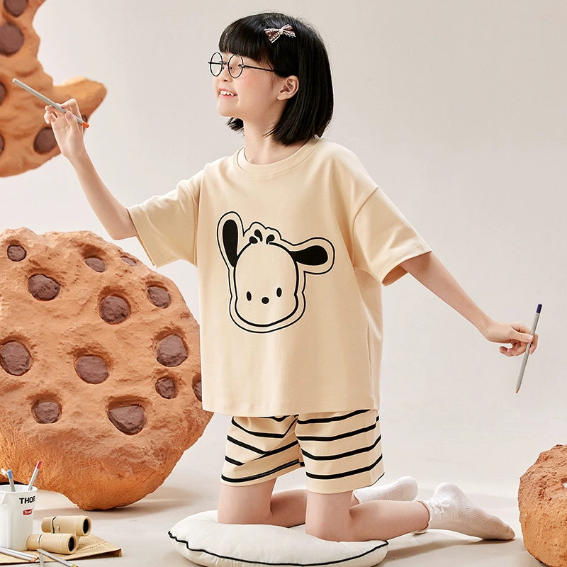 2024 new pacha dog children’s pajamas summer pure cotton short-sleeved thin parent-child suit girls middle and older children home clothes