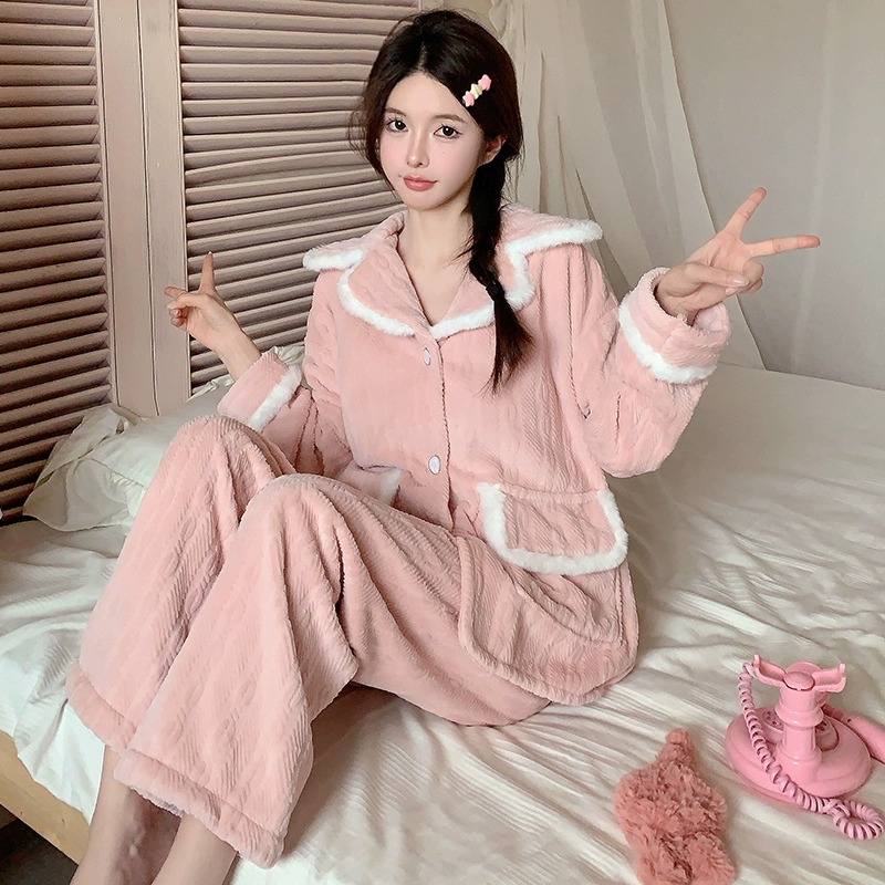 | nameOriginal | 2024 new pajamas for women in autumn and winter coral velvet thickened flannel can be worn outside home clothes suit winter |