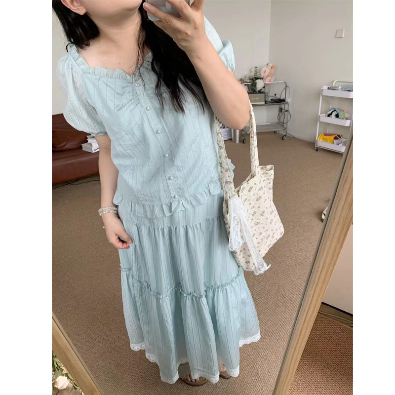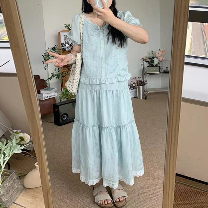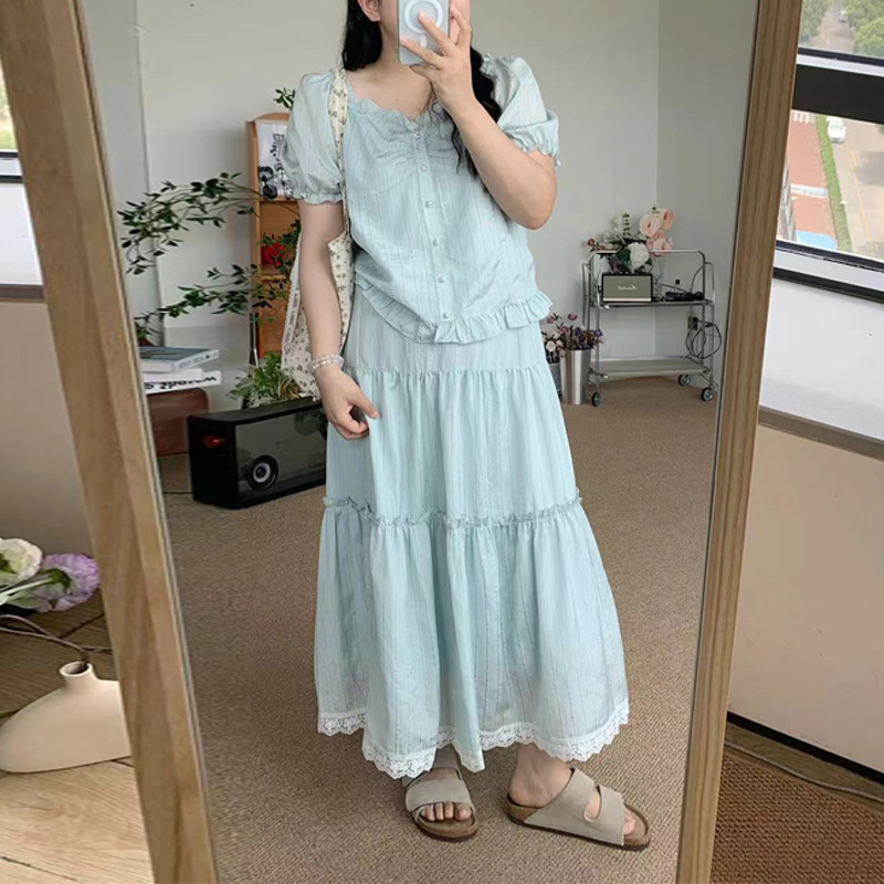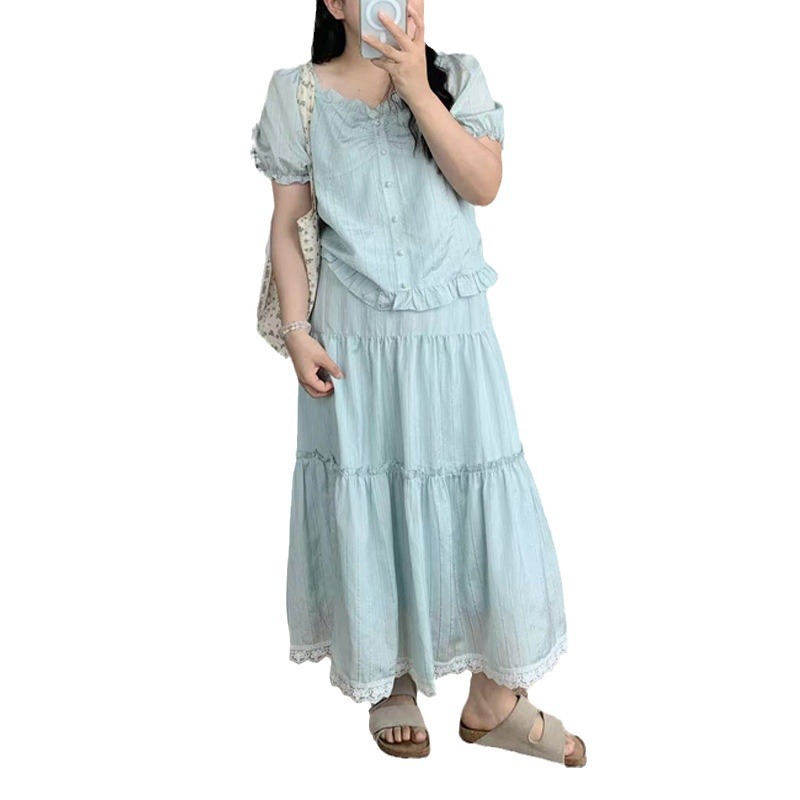 | nameOriginal | 2024 New plus size Mint Blue suit Sweet Lace French suit Summer Top Lace Two-piece Set |