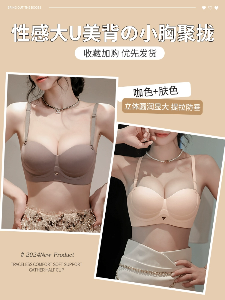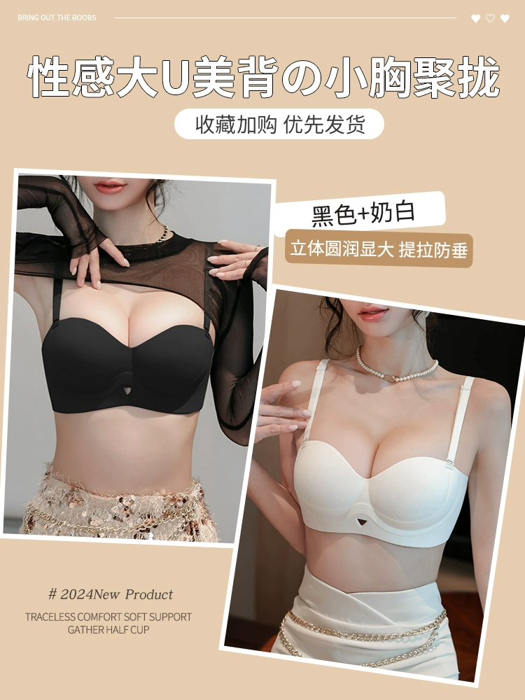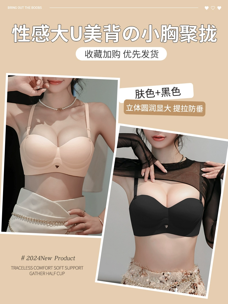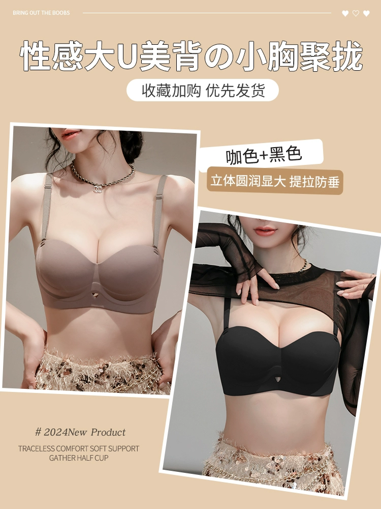 | nameOriginal | 2024 new popular U-shaped beautiful back bra for women with small breasts gathered to look bigger and sexy backless all-in-one vest bra |