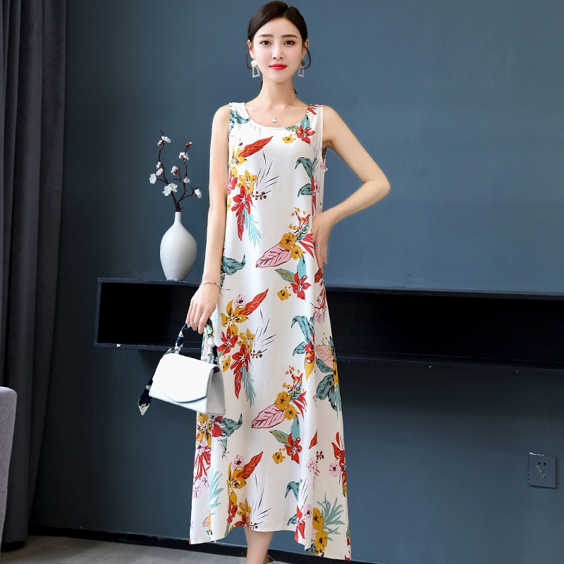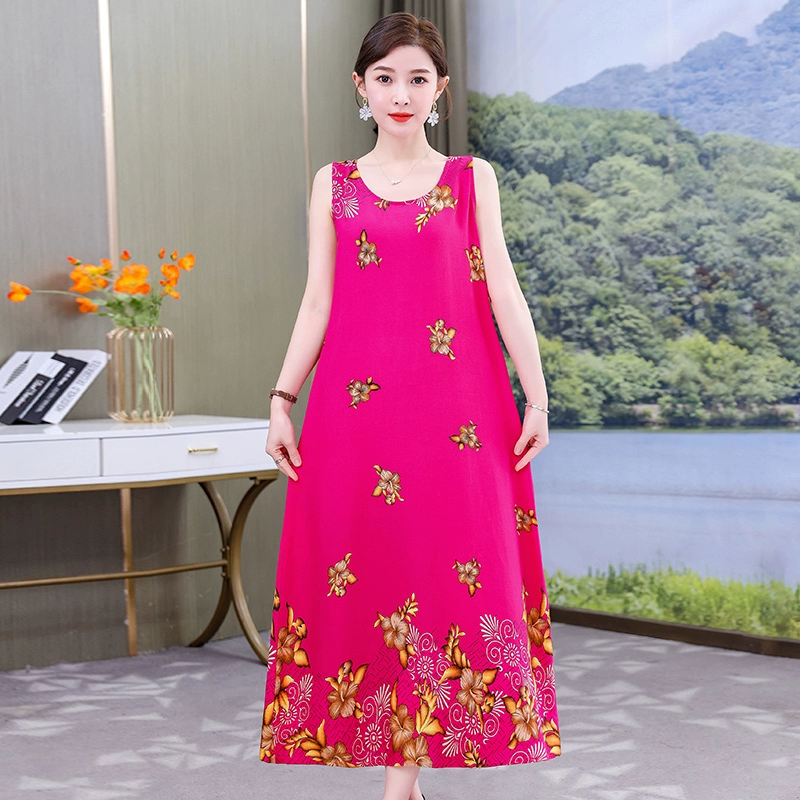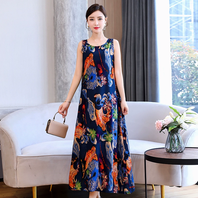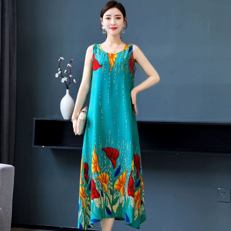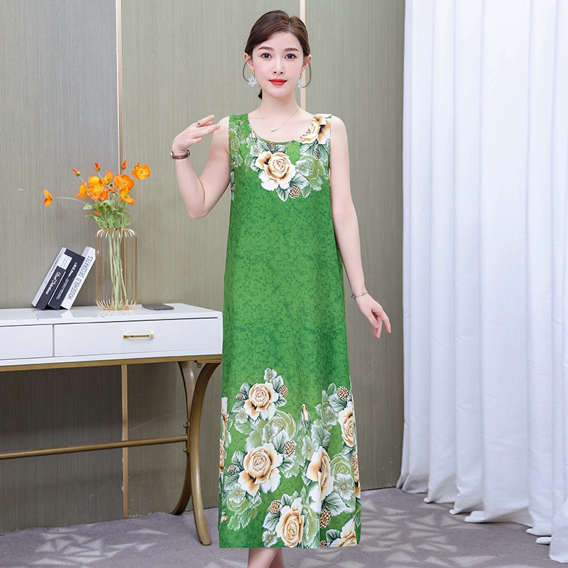 | nameOriginal | 2024 new pure cotton silk dress mid-length floral mom dress western style summer dress sleeveless vest skirt |