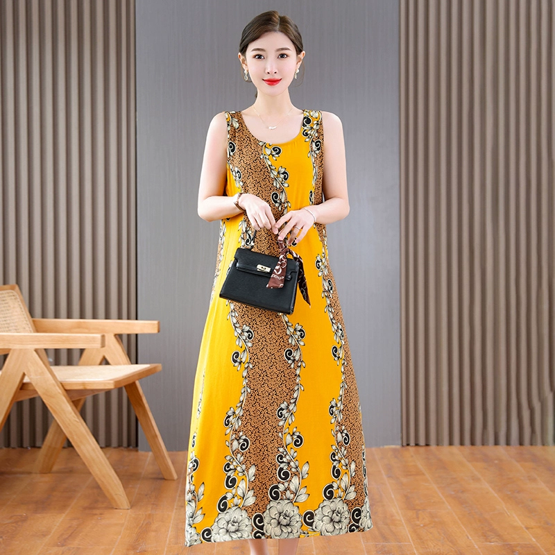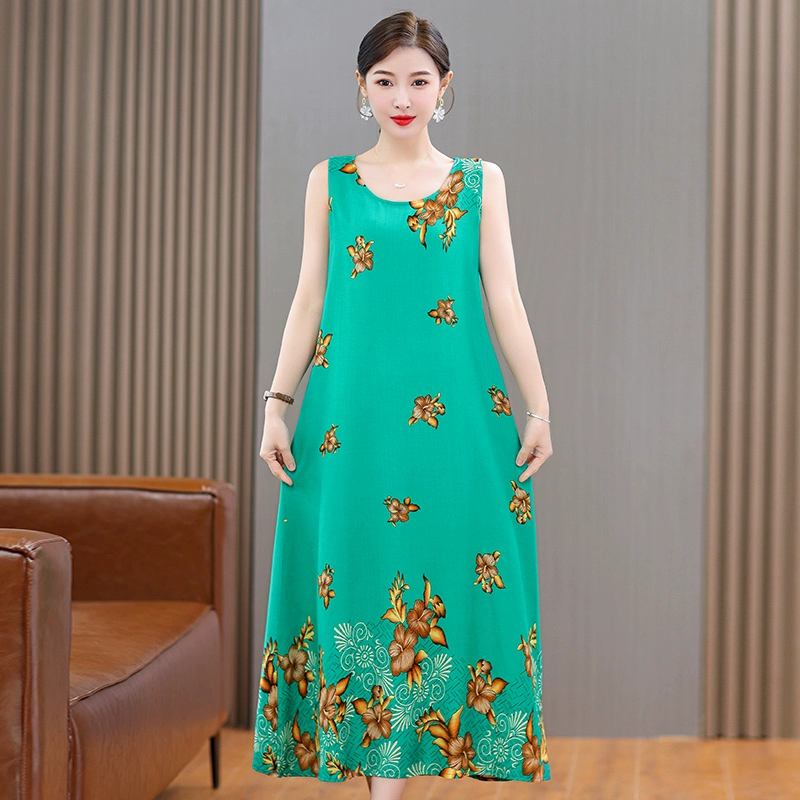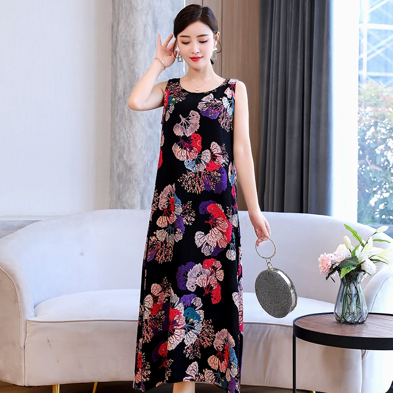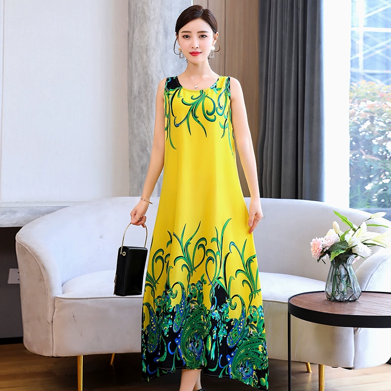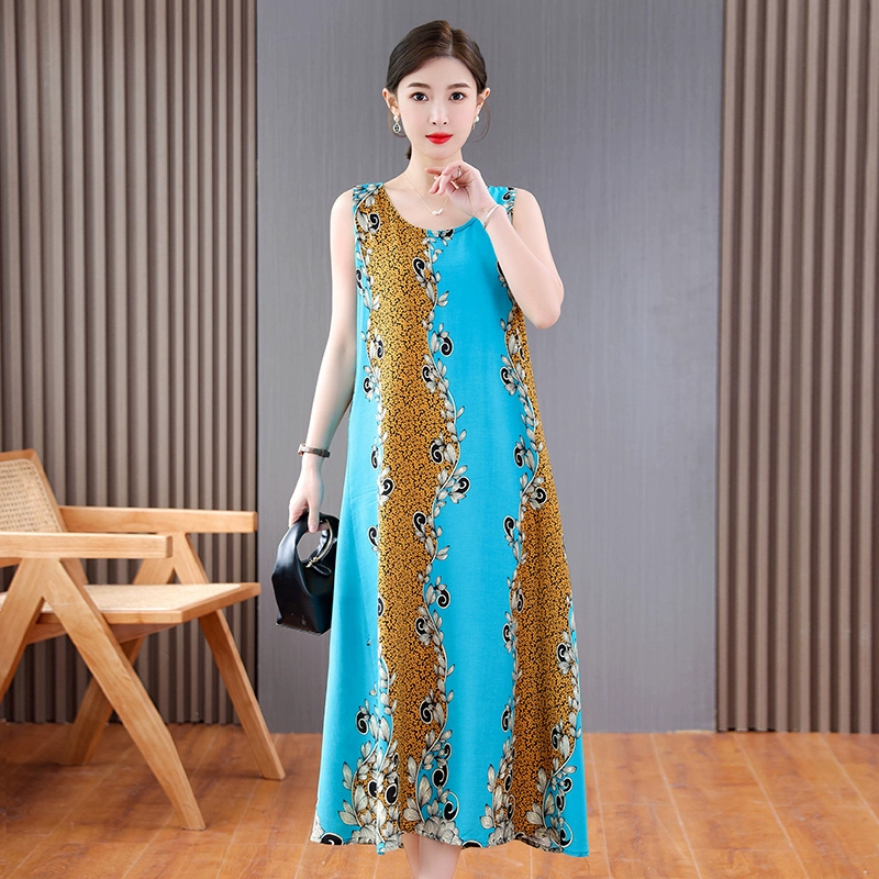 | nameOriginal | 2024 new pure cotton silk dress mid-length floral mom dress western style summer dress sleeveless vest skirt |