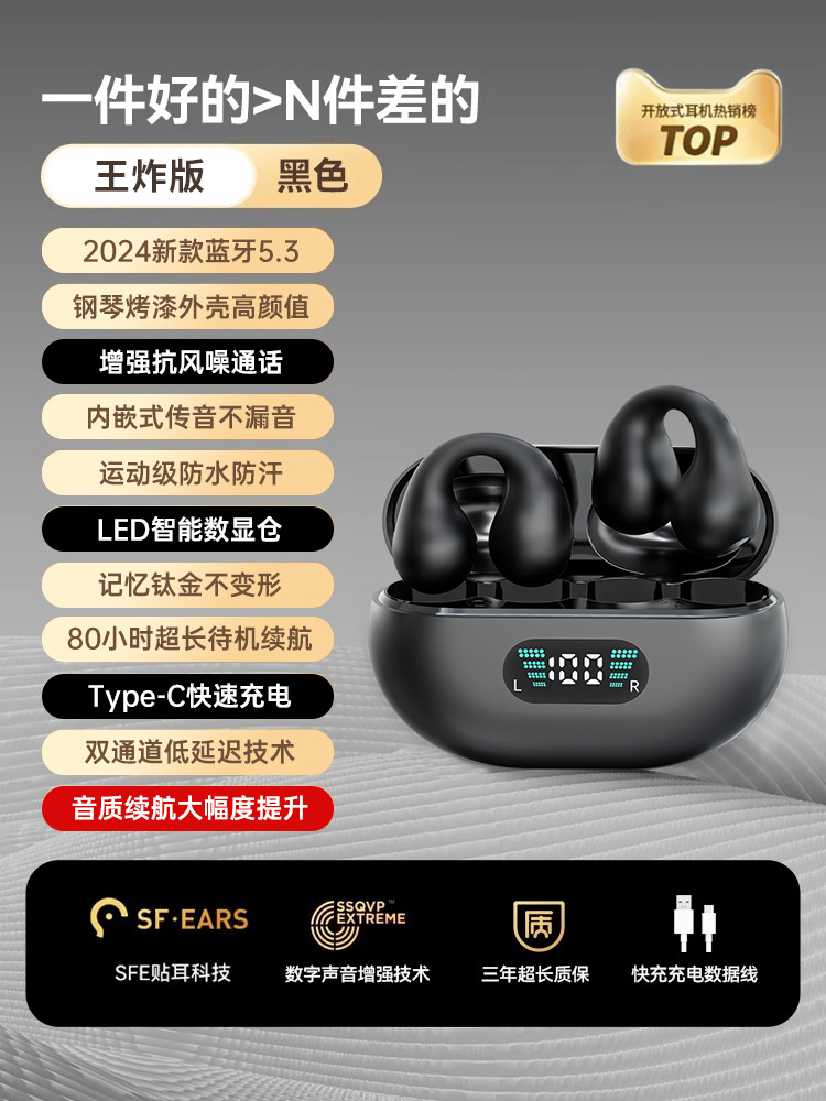 | nameOriginal | 2024 new real wireless bone conduction bluetooth headset without ear clip hanging ear sports suitable for Xiaomi Qingying |