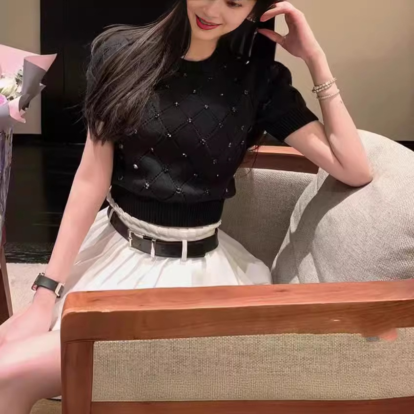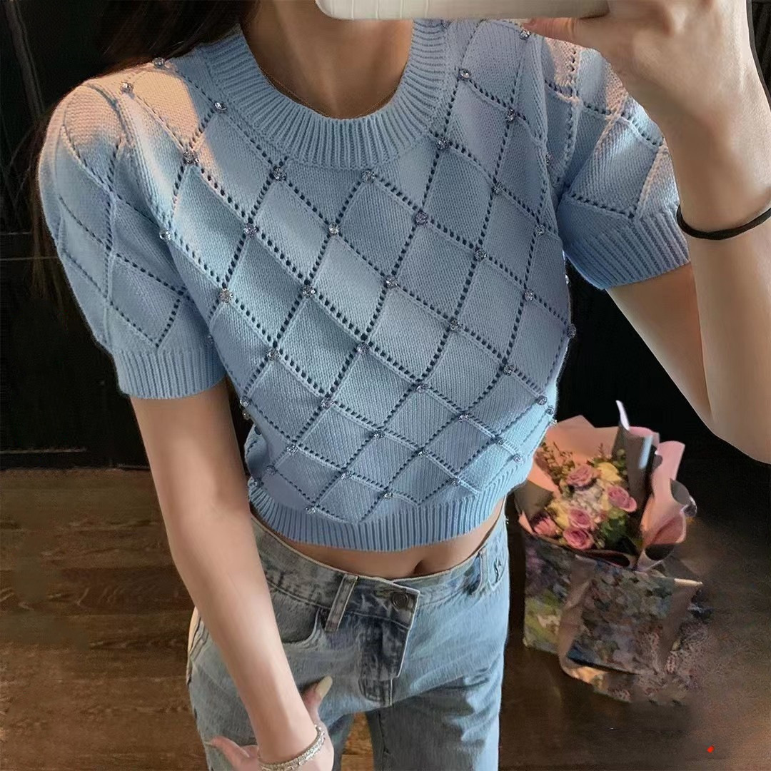 2024 New Short-sleeved Sweater Women’s Puff Sleeve Gentle Loose All-match Pure Desire Top