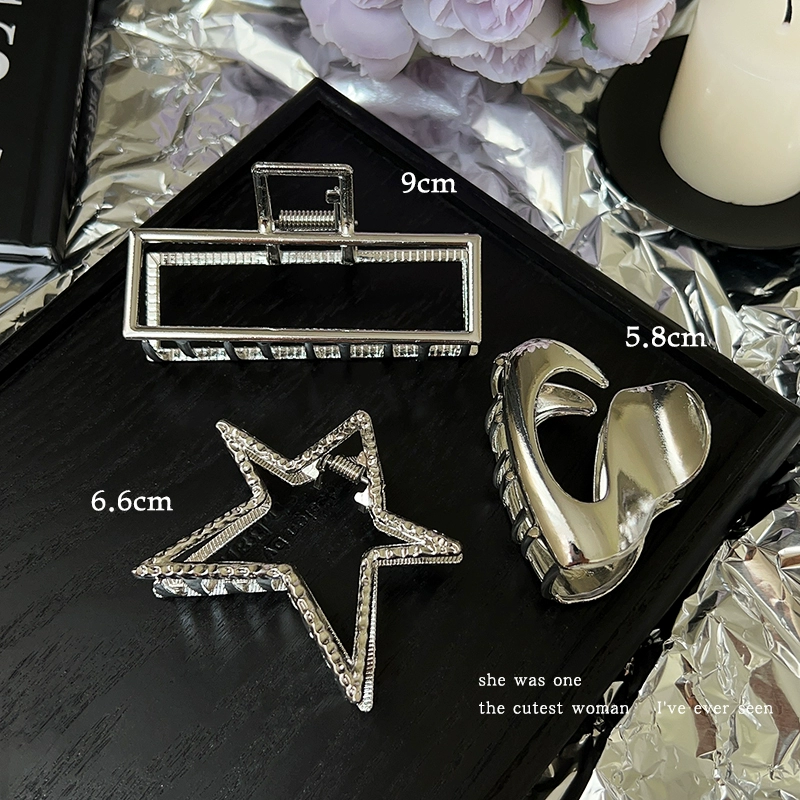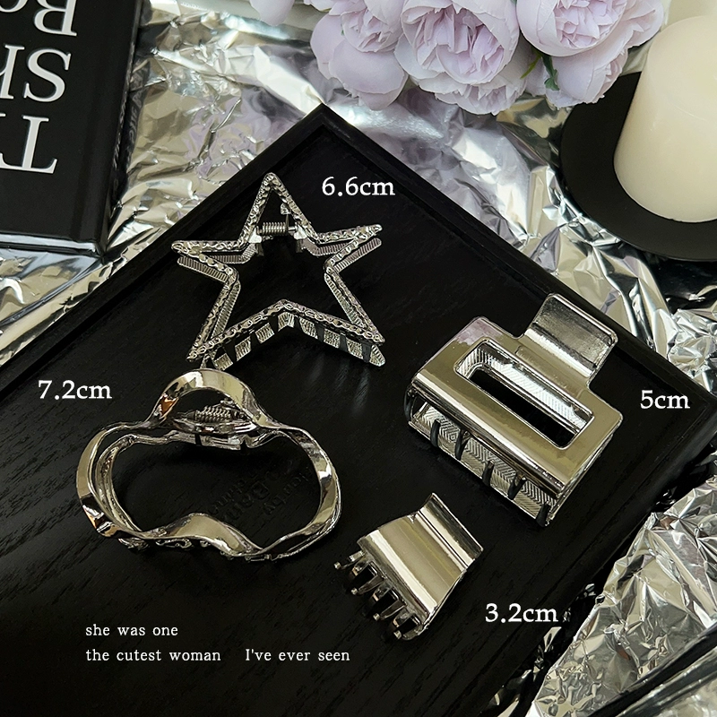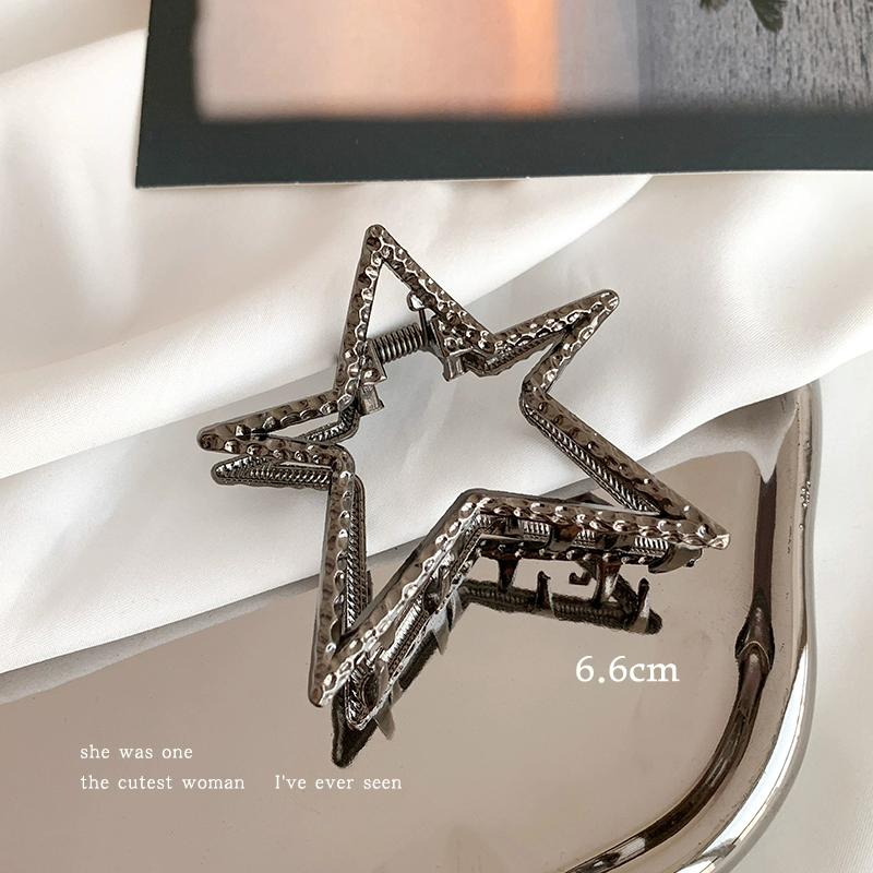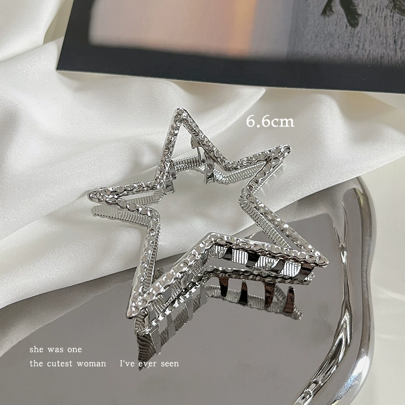 2024 New Silver Five-Pointed Star Metal Clip Hairpin Women's Back Head Shark Clip Small Hairpin Clip Headwear Summer