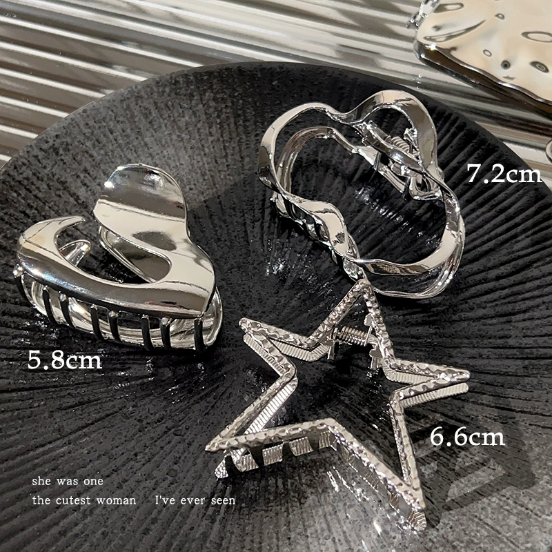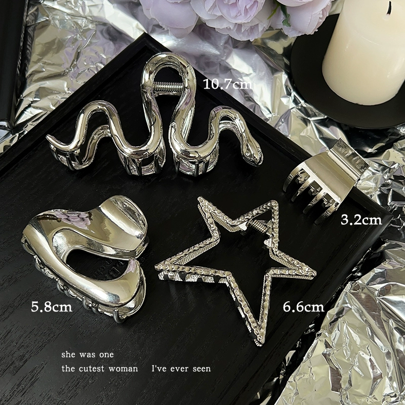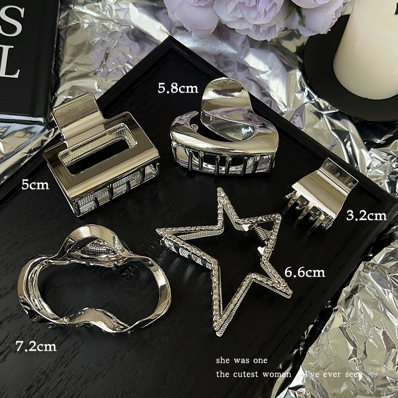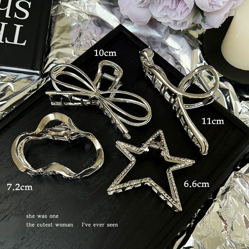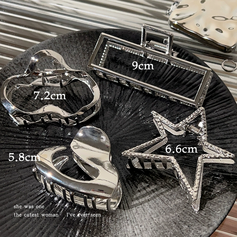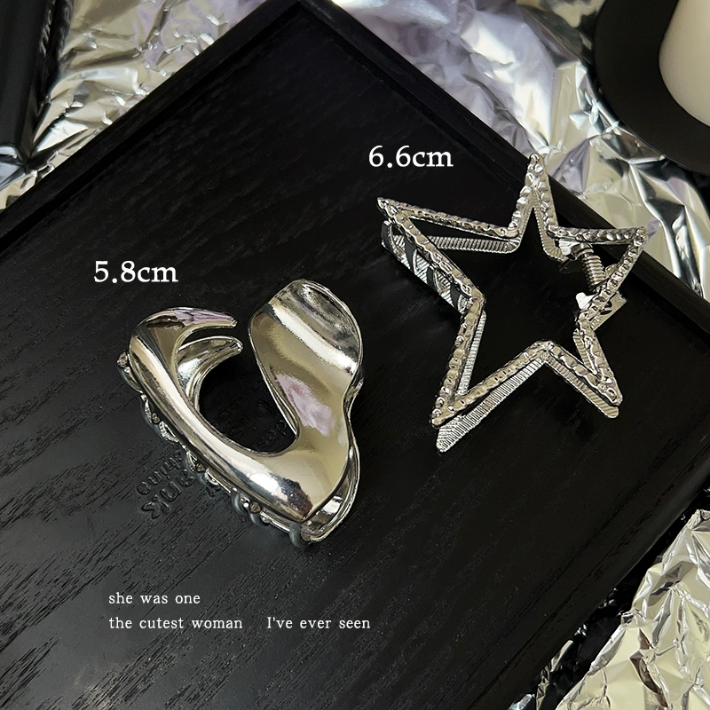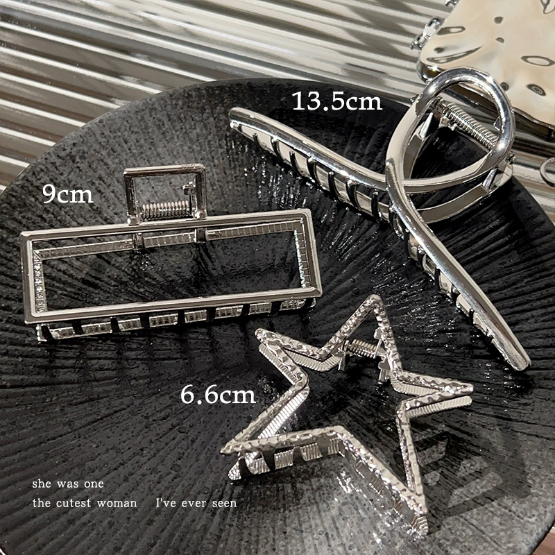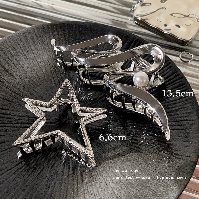 2024 New Silver Five-Pointed Star Metal Clip Hairpin Women’s Back Head Shark Clip Small Hairpin Clip Headwear Summer