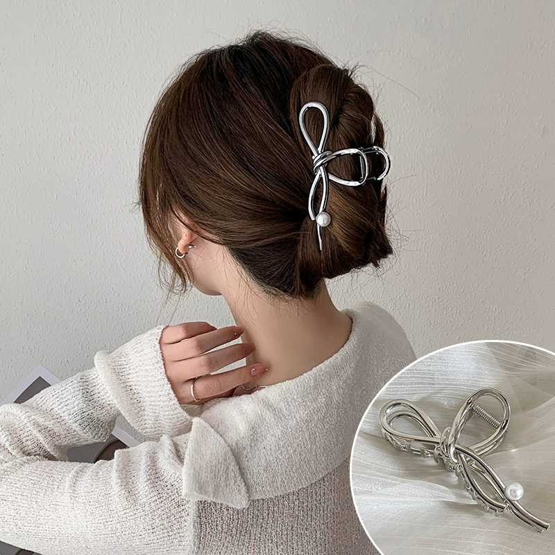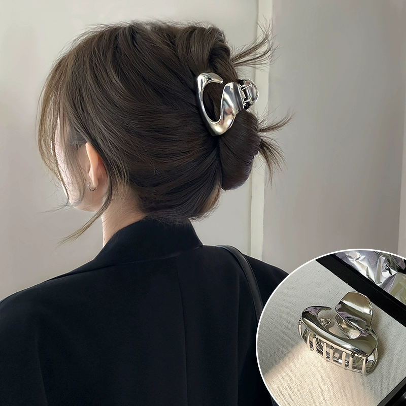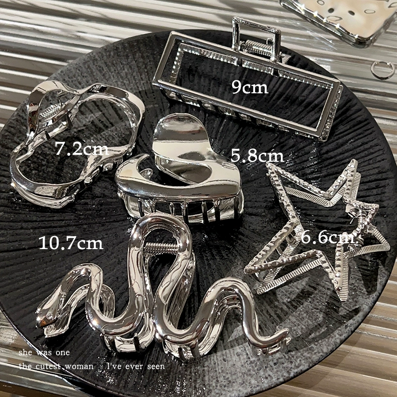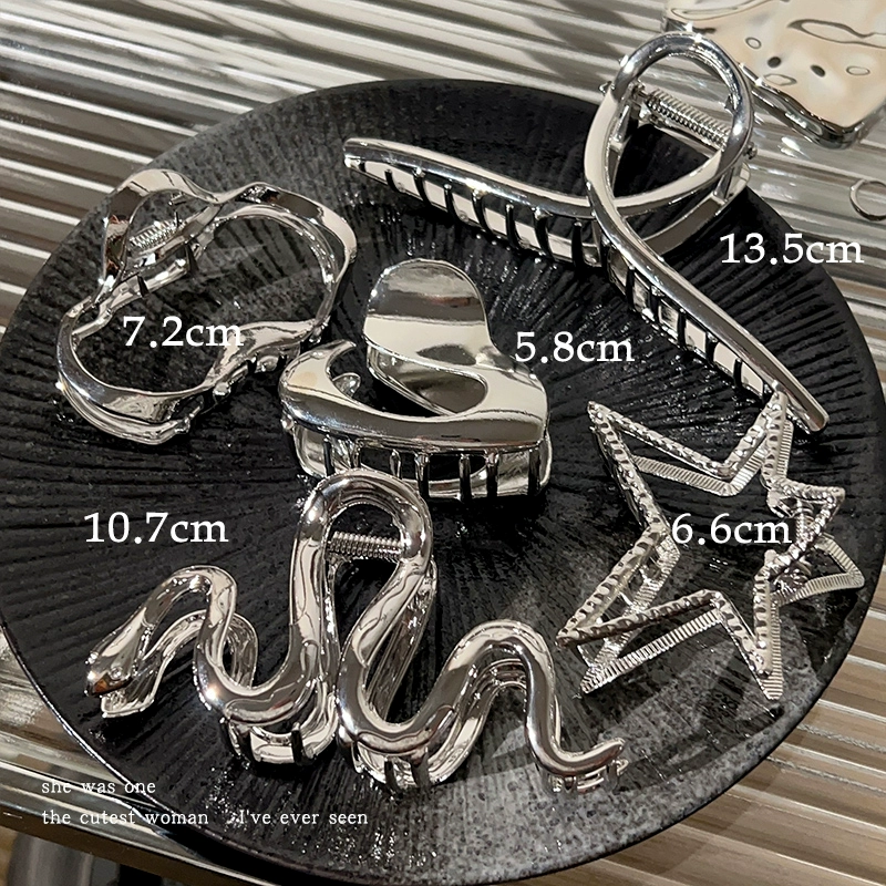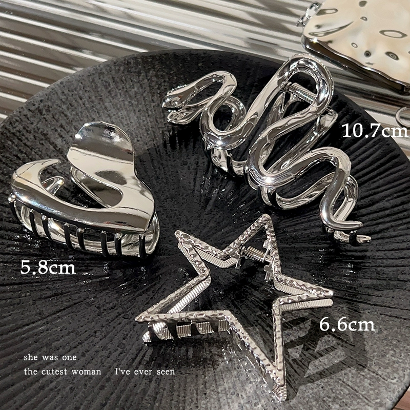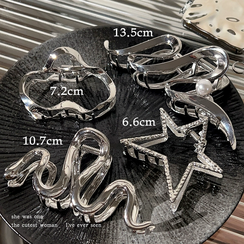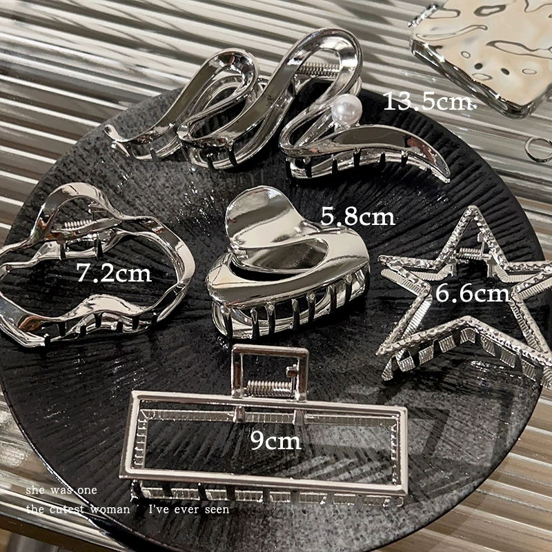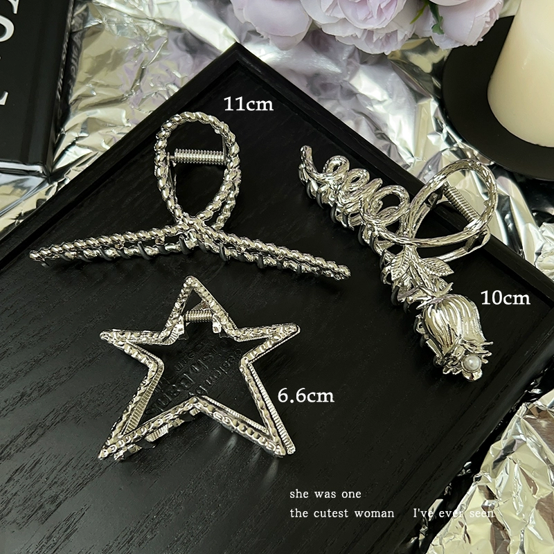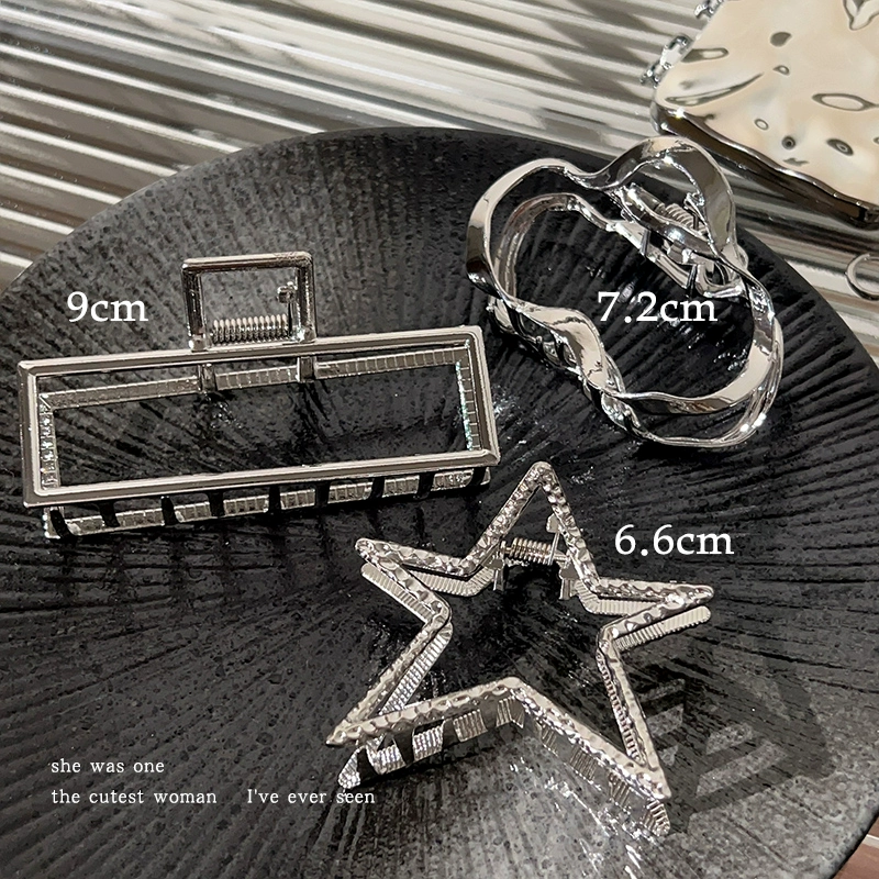 2024 New Silver Five-Pointed Star Metal Clip Hairpin Women’s Back Head Shark Clip Small Hairpin Clip Headwear Summer