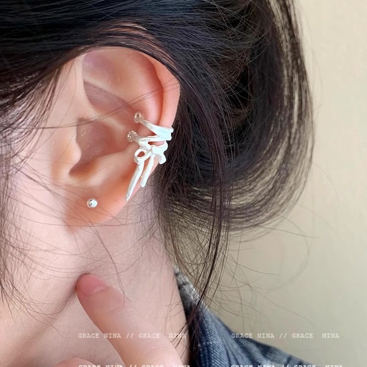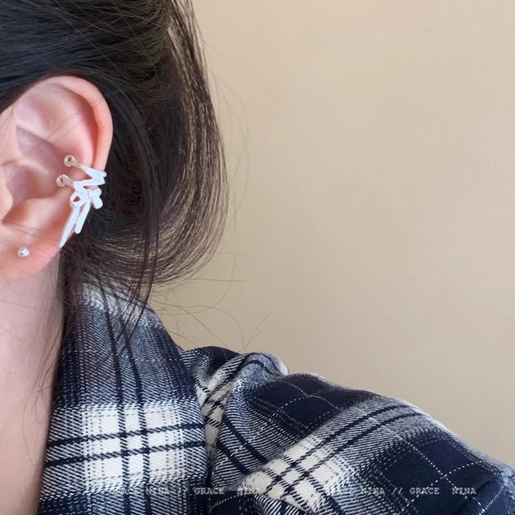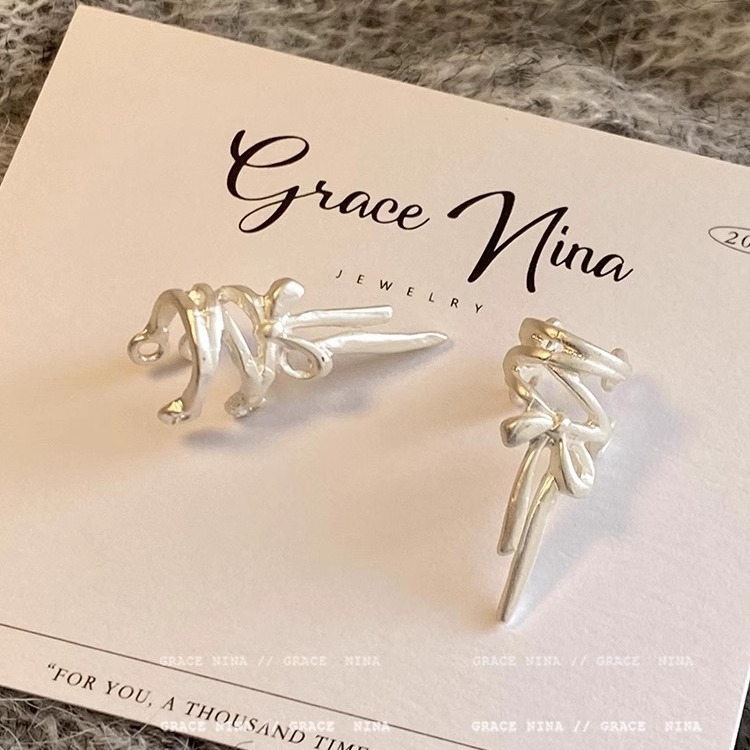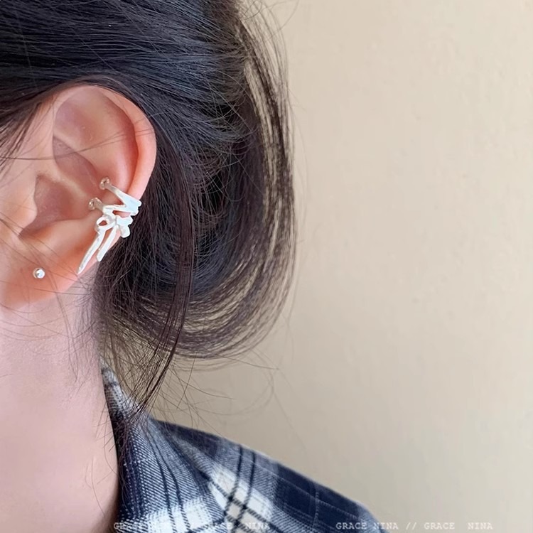2024 New silver Strap Bow Ear Clip Without Ear Holes Female Temperament Advanced Ear Clip Cold Wind Earrings