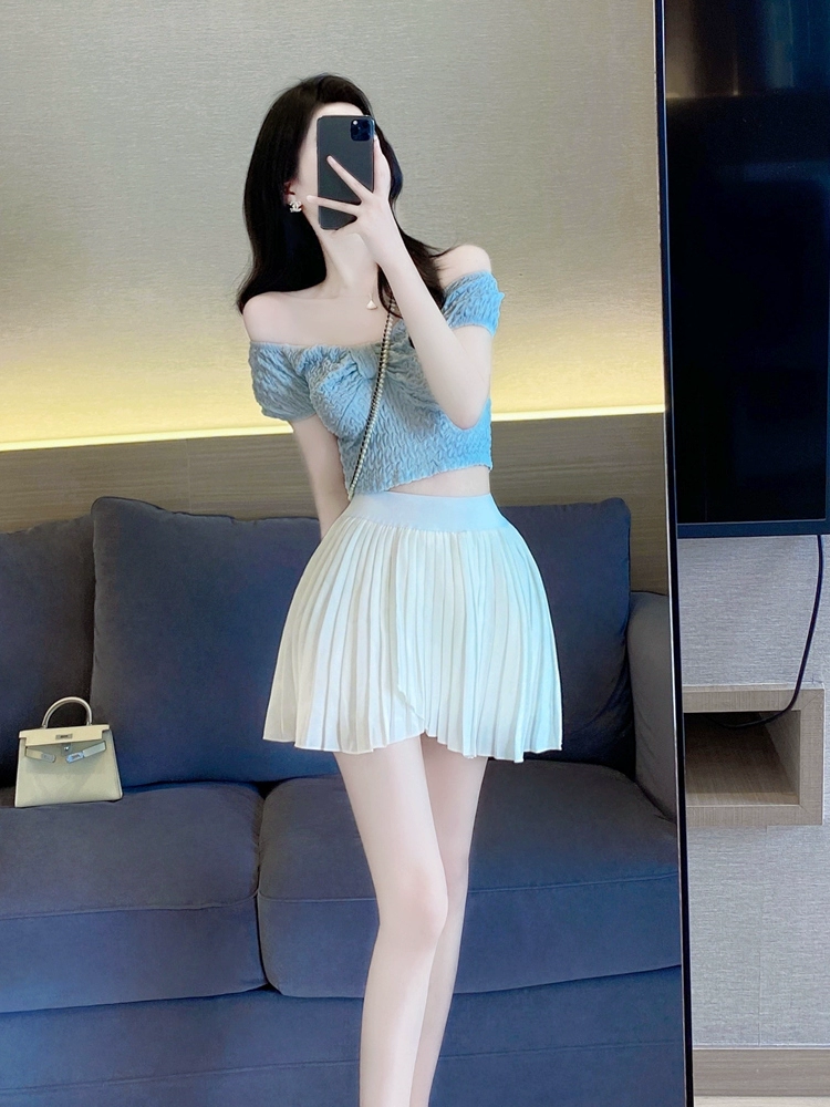 2024 new slim fit v-neck pleated short-sleeved top t-shirt