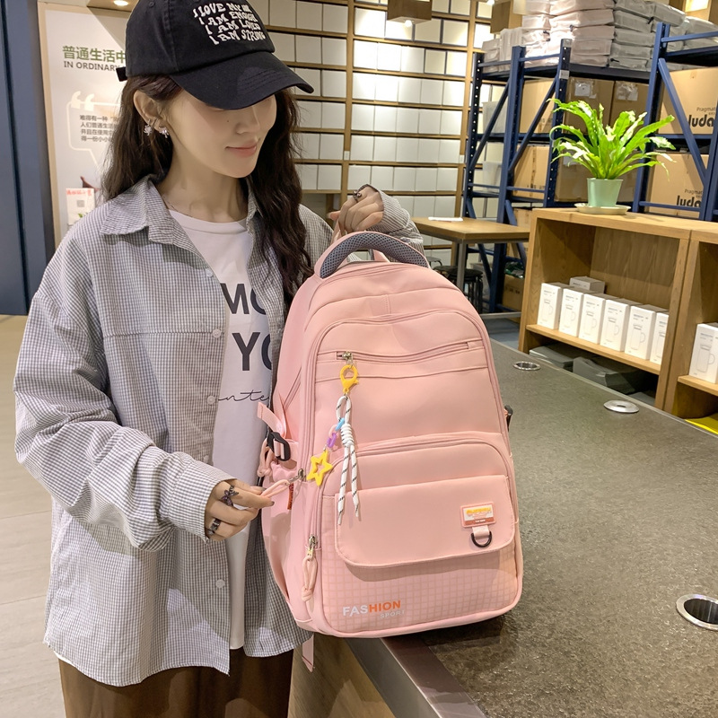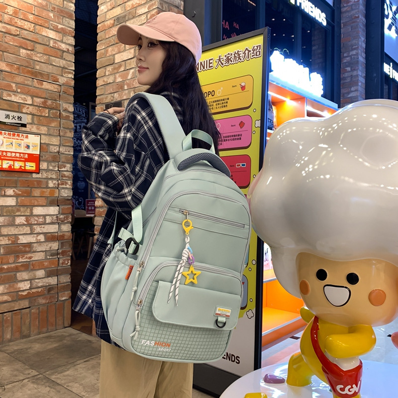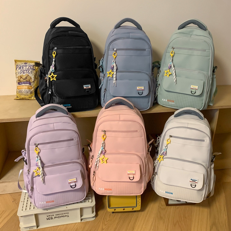 2024 new small fresh solid color large capacity schoolbag simple female college student backpack cute college style schoolbag